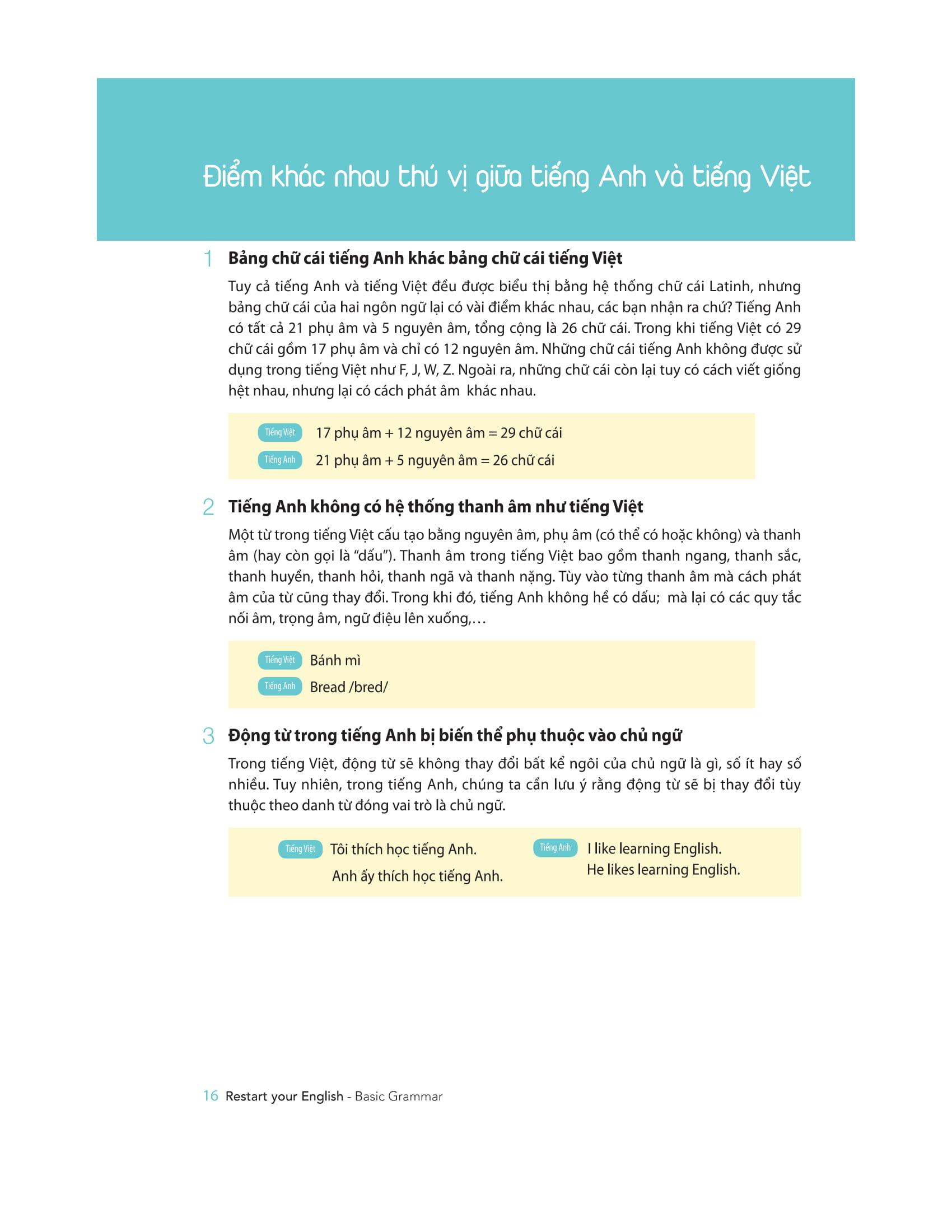 Trong phần này chúng ta sẽ khám phá những điểm khác biệt giữa tiếng Việt với tiếng Anh và những điều cơ bản nhất mà người bắt đầu học tiếng Anh nhất định phải học.