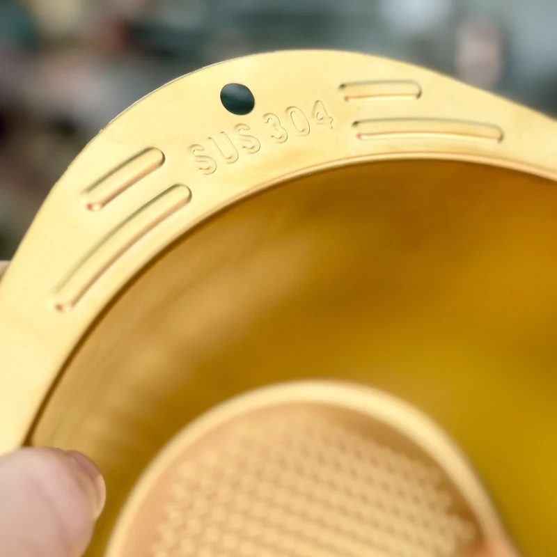 Khả năng thoát nước nhanh: Các lỗ thoát nước được phân bố đều trên toàn bộ bề mặt rổ, với đường kính tối ưu để đảm bảo nước được thoát nhanh nhưng không để lọt thực phẩm nhỏ ra ngoài. Cấu trúc này giúp giảm thời gian ráo nước và nâng cao hiệu quả xử lý thực phẩm.