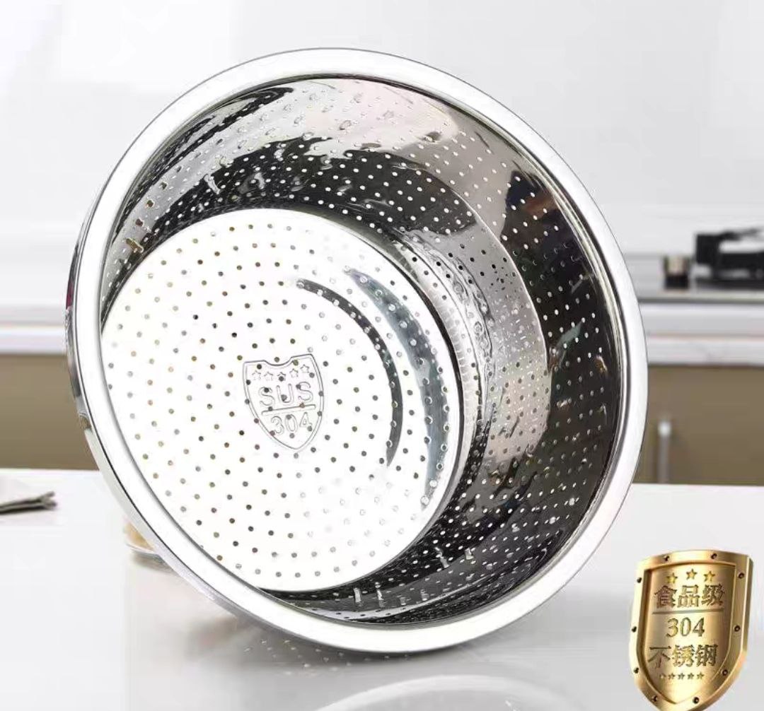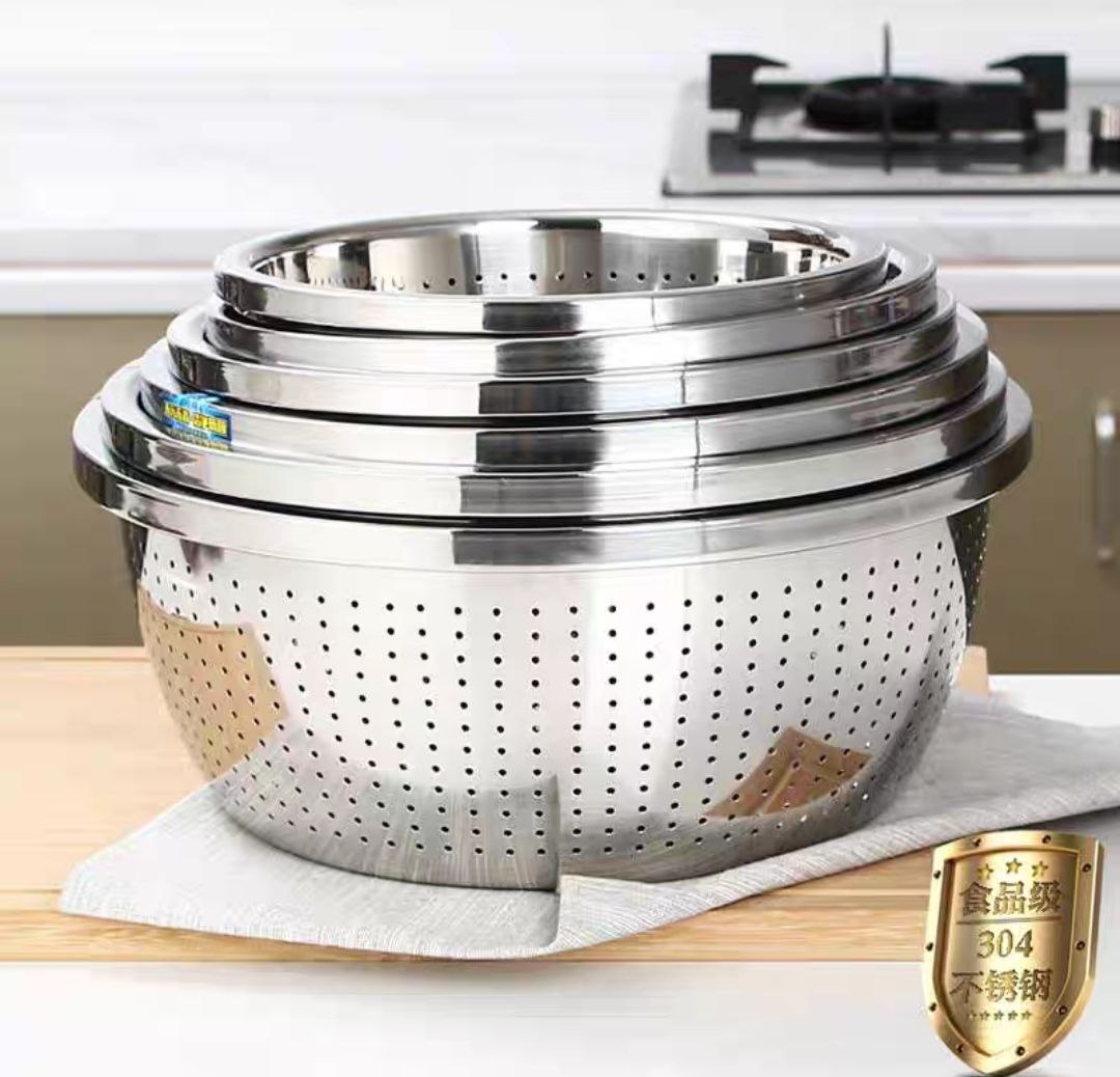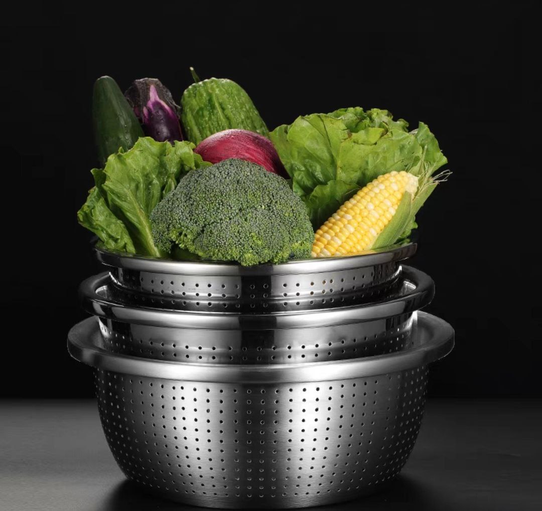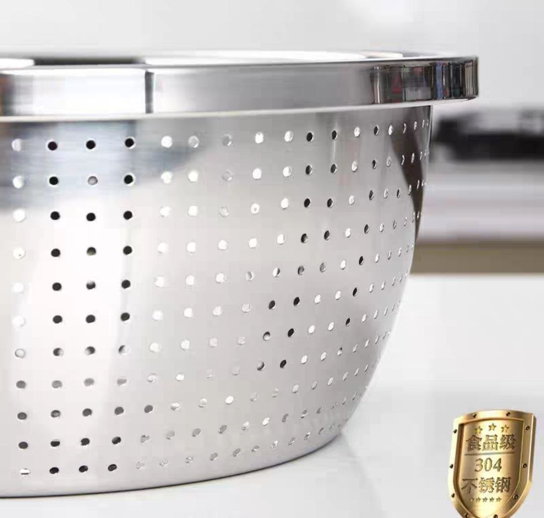 Bộ thau rổ inox 304 cao cấp dùng để vo gạo rửa rau củ quả tiện lợi không sợ nấm mốc