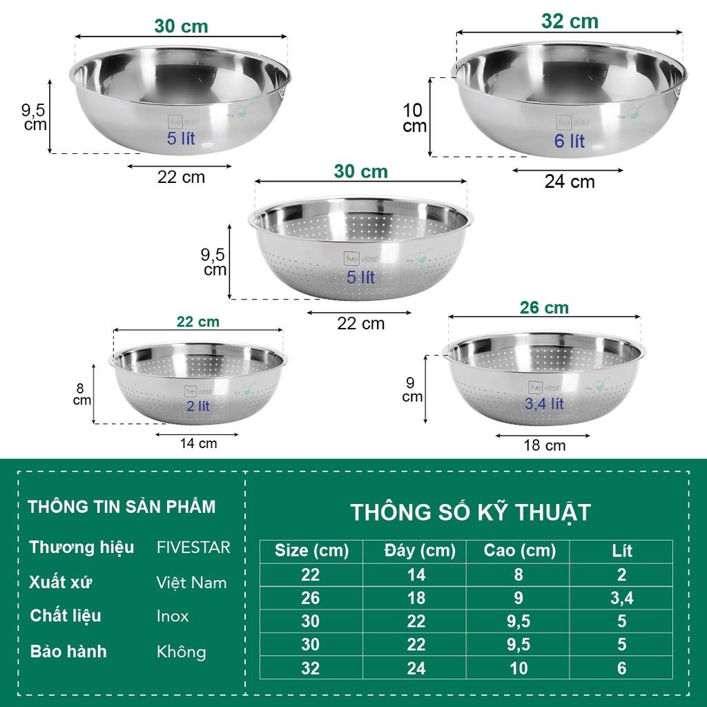 ✨Rổ lưới inox cao cấp Fivestar 22cm / 26cm / 30cm