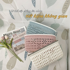 - Giỏ nhựa hoa VIỆT NHẬT có quai cầm được thiết kế giả đan mây điểm xuyết những bông hoa xinh, lỗ nhỏ, giúp bạn để được những vật nhỏ mà không bị rơt rớt
