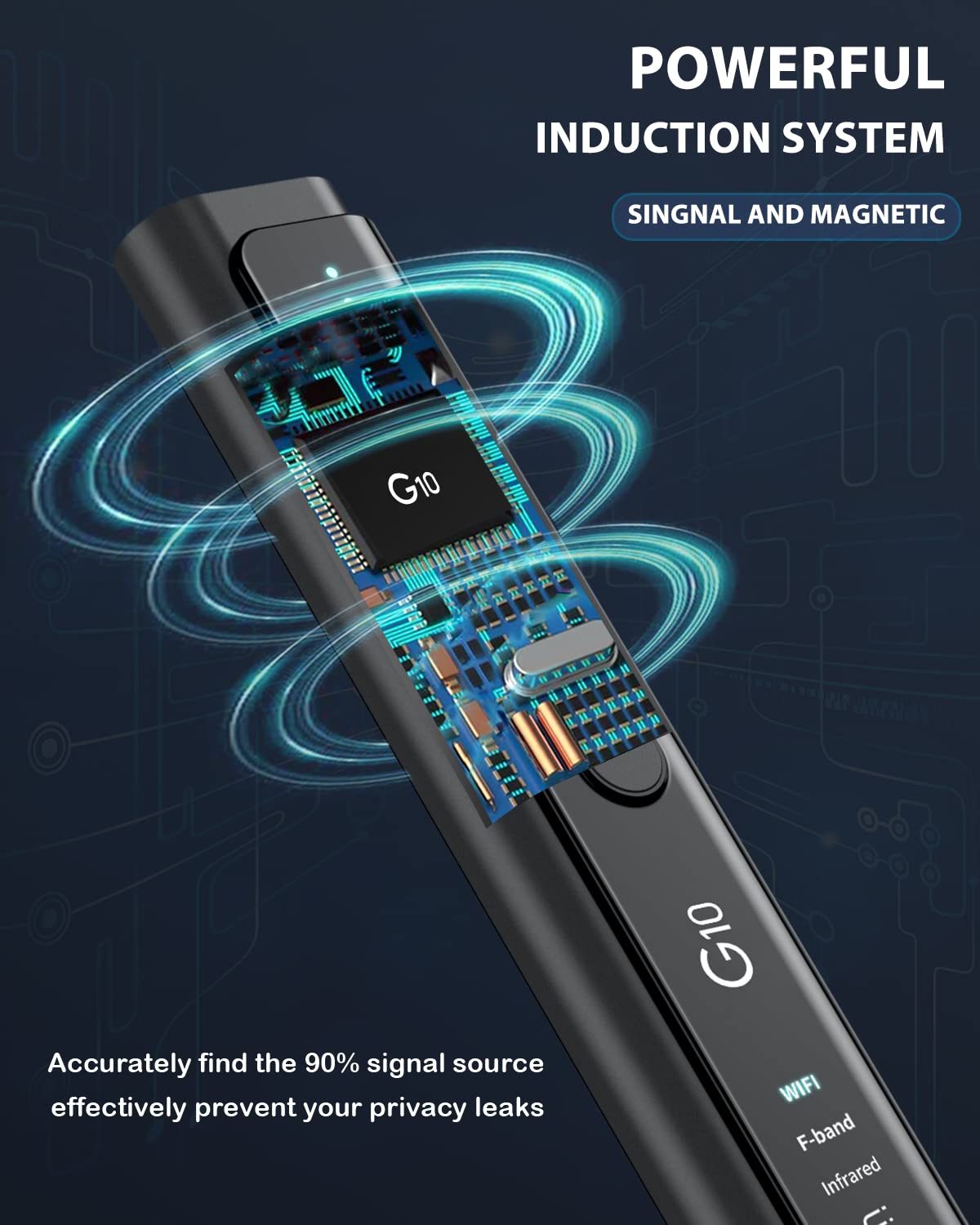- Lật tẩy âm mưu đen tối: Phát hiện camera quay lén, máy ghi âm tinh vi, dù được giấu kín đến đâu, với khả năng quét dải tần rộng từ 50MHz đến 6GHz.