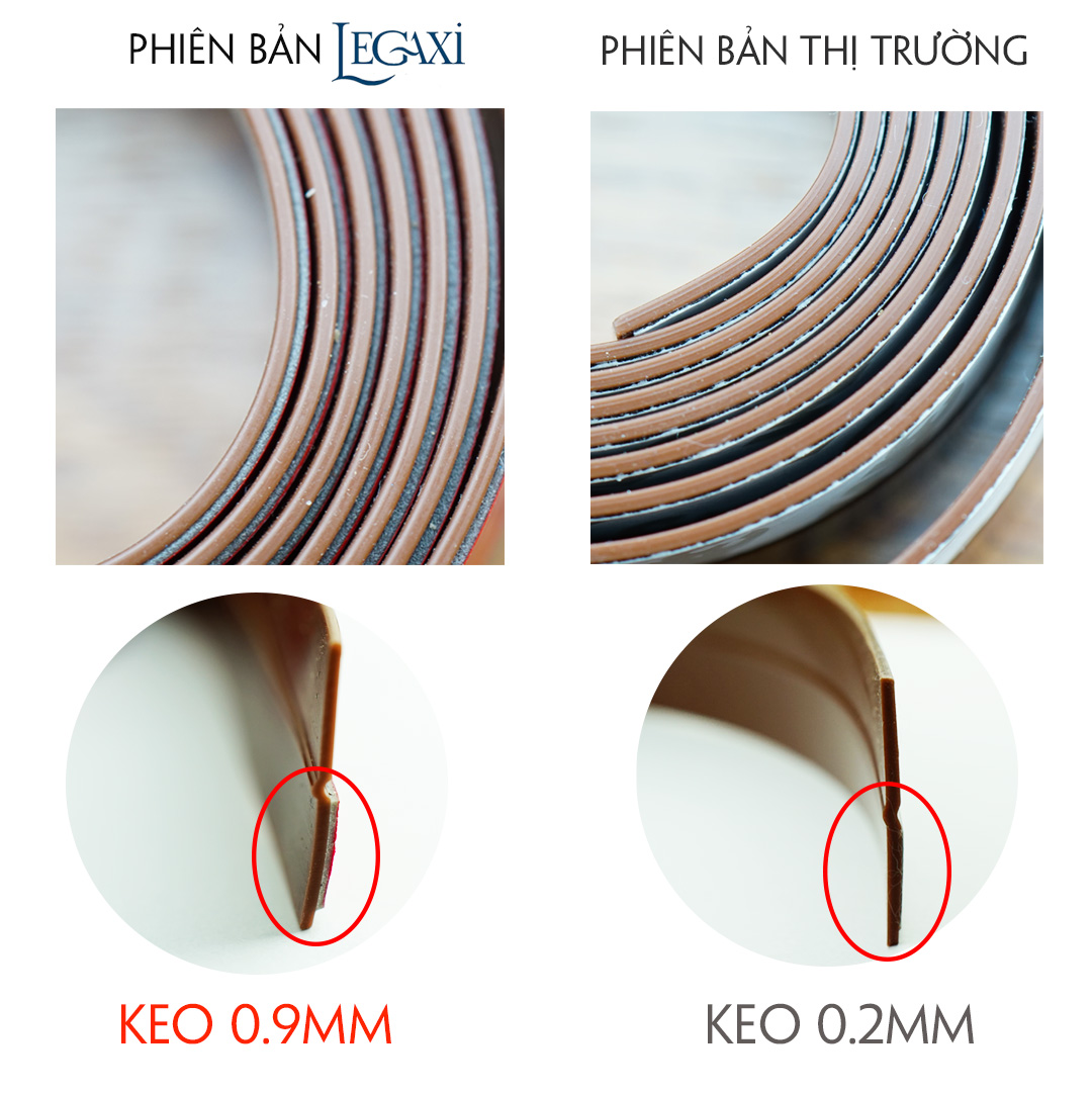 - Dựa theo kết quả tìm hiểu, khảo sát và nghiên cứu, phiên bản mới với phần keo dày 0.9mm, chất liệu Arcylic và phụ gia Legaxi, cho độ bám dính siêu chắc chắn, thích hợp với bề mặt sần sùi của các loại cửa và nền