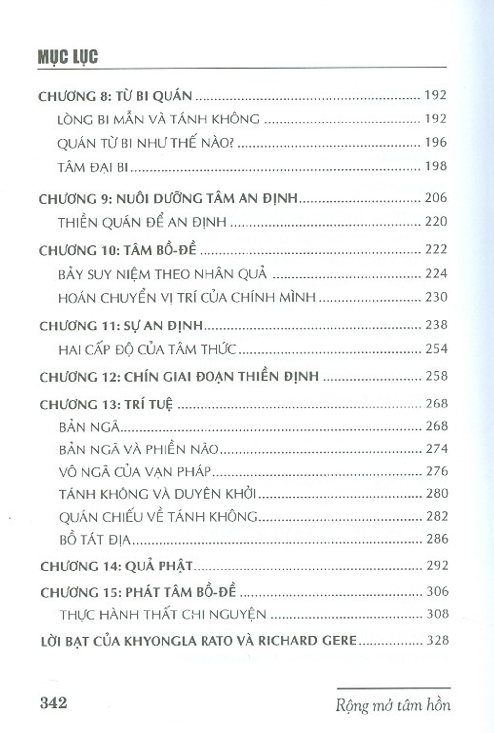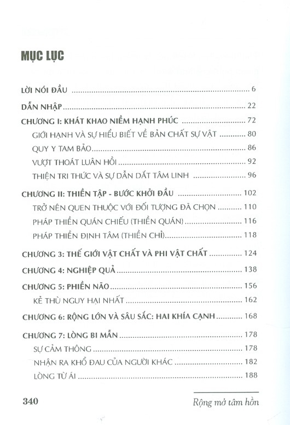 Sách gồm 15 chương, giảng giải các vấn đề mà bất cứ ai khi đến với đạo Phật đều cũng sẽ quan tâm, như động cơ tu tập, phương pháp tu tập, những giai đoạn tu tập khác nhau và kết quả đạt được qua từng giai đoạ Những mô tả của Đức Đạt-lai Lạt-ma về từng vấn đề này đều rất rõ ràng, mạch lạc, cho thấy sự uyên bác và sáng suốt của một bậc thầy thực tu thực chứng. Những lời dạy của Ngài không chỉ soi sáng con đường tìm cầu hạnh phúc của mỗi người, mà còn mang lại một niềm tin vững chắc vào những giá trị đạo đức, chân thật, nhất là trong bối cảnh hiện nay, khi nhân loại đang từng ngày chứng kiến những biểu hiện của một khuynh hướng các giá trị vật chất đang dần dần lấn áp các giá trị tinh thần.