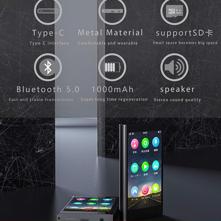 Máy Nghe Nhạc RUIZU H10 Bluetooth 5.0 - Type C - Màn hình lớn có cảm ứng, Bộ nhớ 16Gb - Có loa ngoài