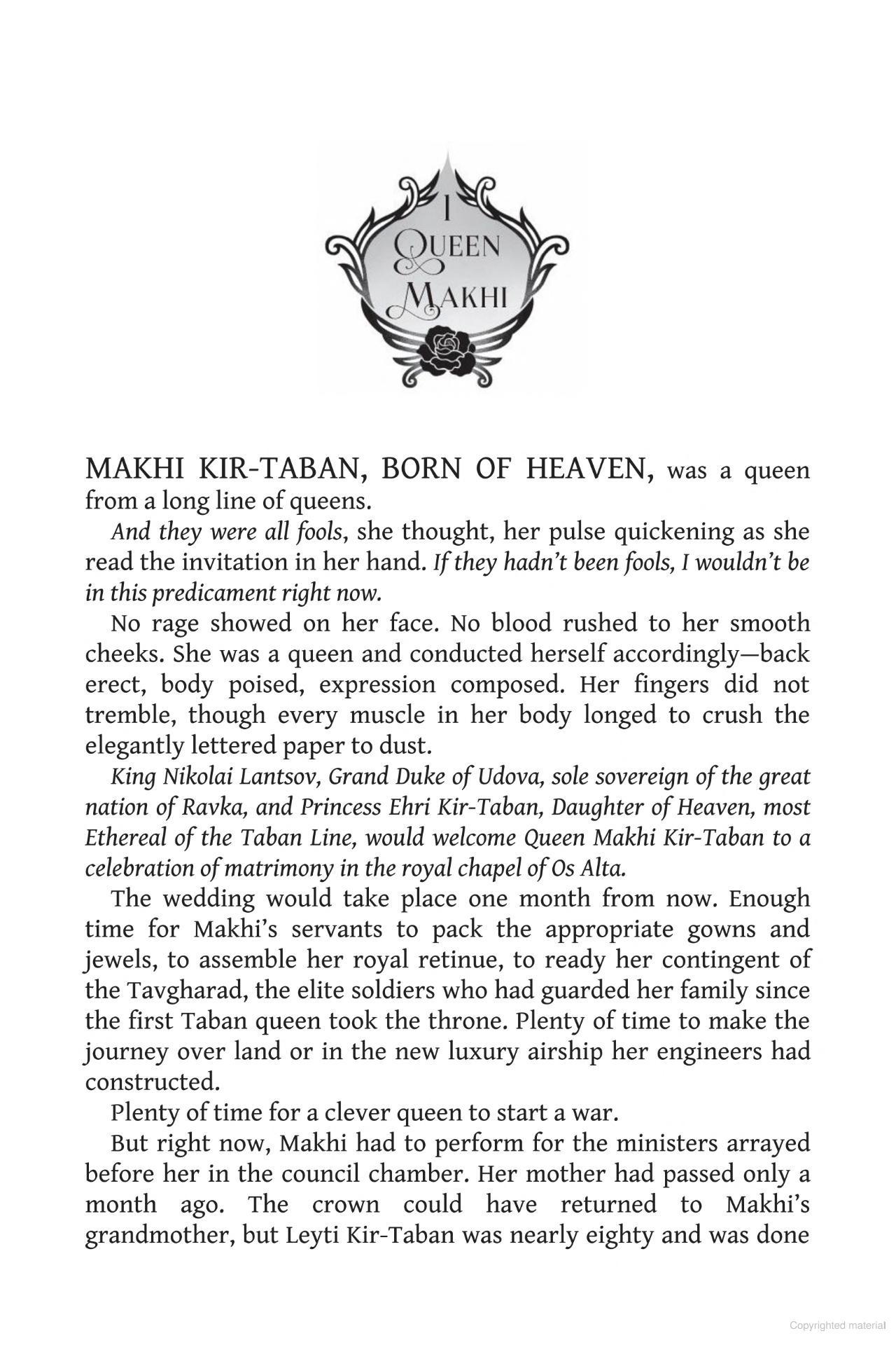 The Demon King. As Fjerda’s massive army prepares to invade, Nikolai Lantsov will summon every bit of his ingenuity and charm—and even the monster within—to win this fight. But a dark threat looms that cannot be defeated by a young king’s gift for the impossible.