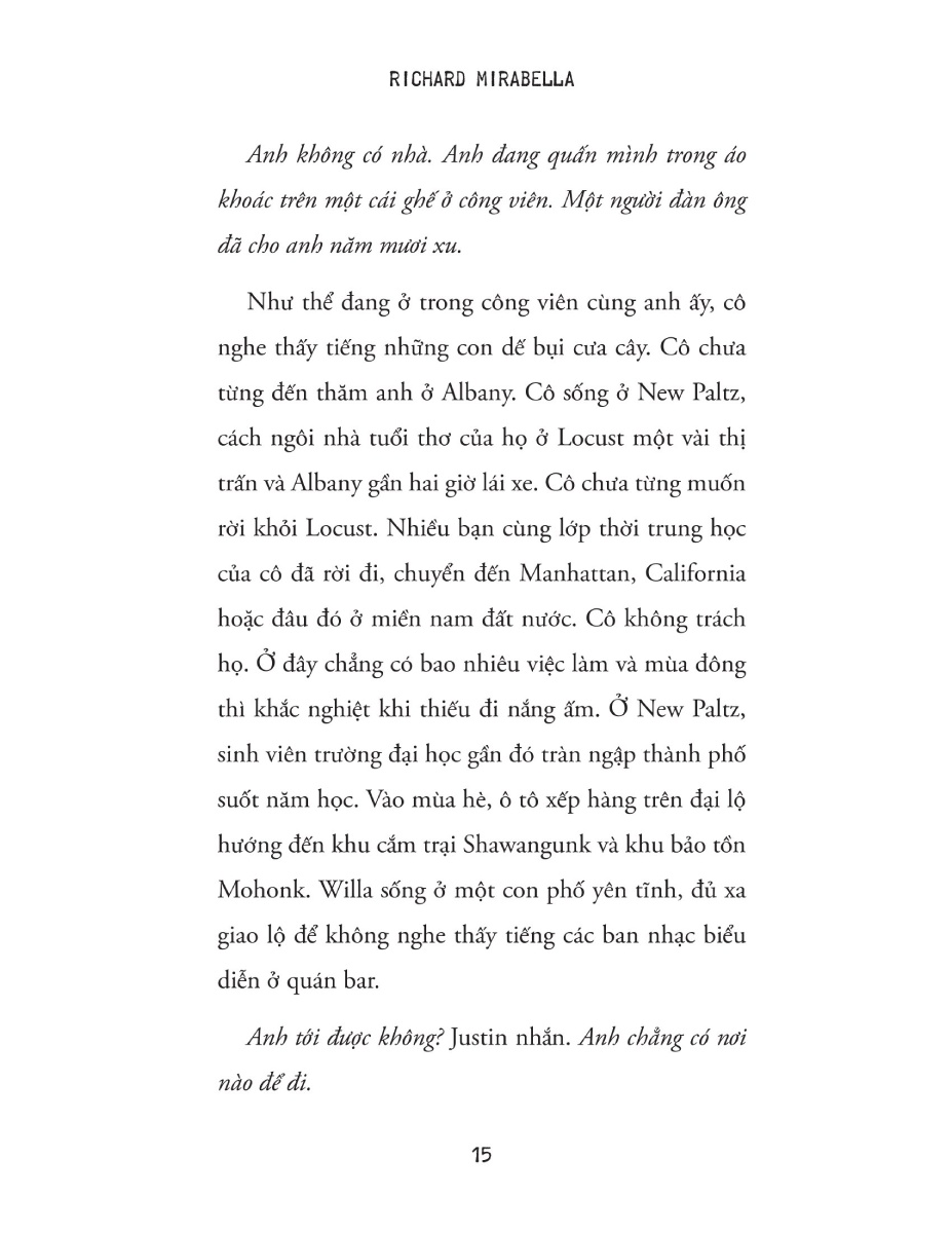 Richard Mirabella là một nhà văn kiêm công chức sống ở ngoại ô New York. Truyện ngắn của ông đã xuất hiện trên Story Magazine, American Short Fiction trực tuyến, One Story, Split Lip Magazine, và nhiều nơi khác.