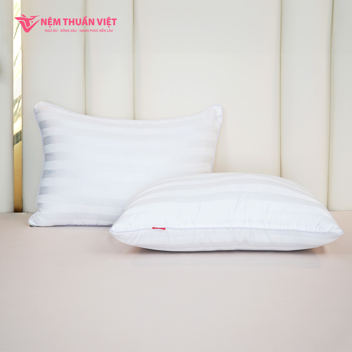 Mua tại TiktokTHÔNG TIN SẢN PHẨM Kích thước: 50cm x 70cm (rộng x dài) Chất liệu: Polyester cao cấp Vỏ áo gối: Vải Polyester sọc khách sạn 3 phân Chính sách đổi trả: 1 đổi 1 trong vòng 7 ngày Bảo hành: 90 ngày