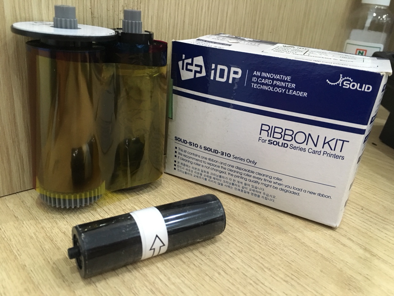 Ruy băng mực màu YMCKO máy in thẻ SOLID 310/510 series Ribbon Màu máy in thẻ SOLID 310/ 510 YMCK - 250 lần in/cuộn 4 Dải màu YMCK + 1 Lớp overlay Bao gồm: Thẻ vệ sinh máy + cuộn vệ sinh thẻ Số lần in: 250 lần in/cuộn Xuất xứ: Hàn Quốc Mực in thẻ nhựa máy in thẻ SOLID 310/ 510 sử dụng công nghệ in nhiệt thẩm thấu thăng hoa ứng dụng phong phú để in thẻ Thành viên, thẻ Học sinh, Thẻ từ, Thẻ chấm công,… 4 Dải màu Yeallow, Magenta, Cyan, Black và lớp overlay Ribbon mực Màu YMCK sử dụng cho máy in thẻ SOLID 310S/ 310D/ 510S/ 510D/ 510L cho tốc độ in từ 17-23 giây/thẻ màu.