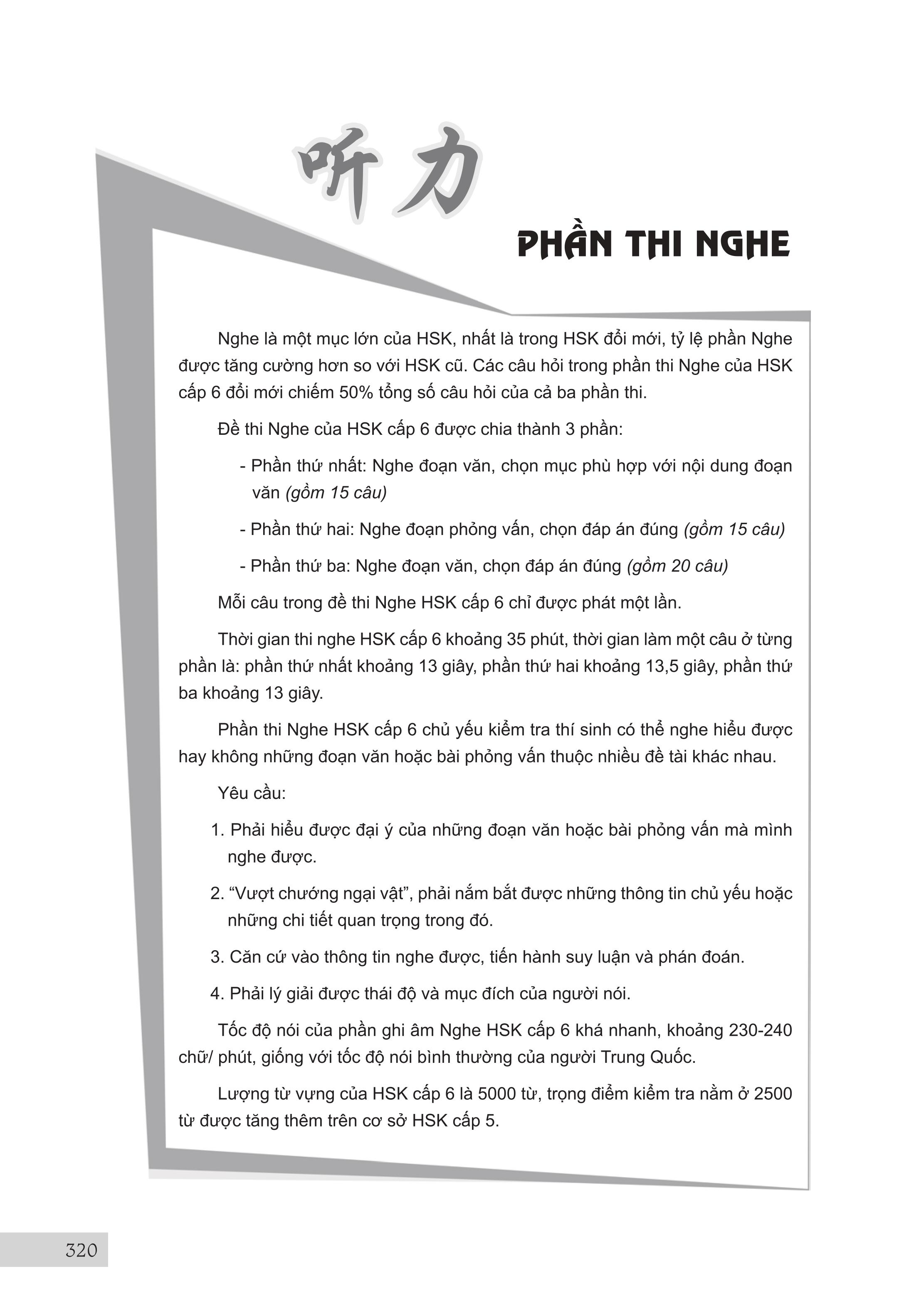 Để đạt mục tiêu “cấp tốc” đã giải thích ở trên, chúng tôi dựa vào Đề cương và Đề thi mẫu của HANBAN, cũng như những tài liệu luyện thi HSK của Trung Quốc để biên soạn bộ sách này. Từng phần của bài thi được giới thiệu qua một cấu trúc thống nhất như sau: