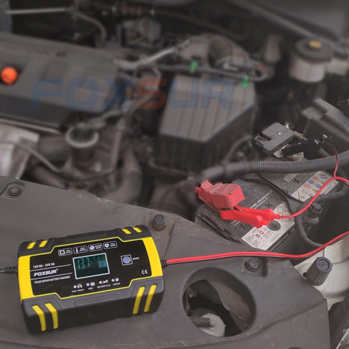✨Sạc bình ắc quy 12V 24V 6Ah - 150Ah FOXSUR tự ngắt khi đầy chức năng bảo dưỡng phục hồi ắc quy bằng khử sunfat