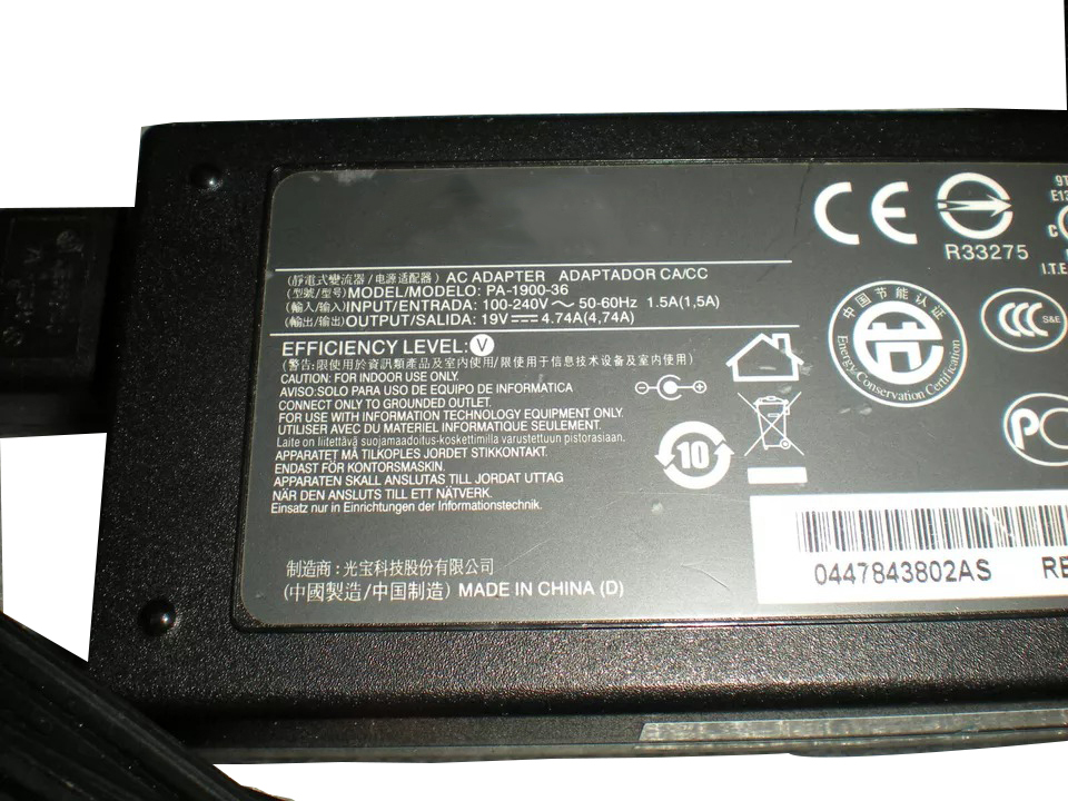 Tên sạc Điện áp vào (input) 100V - 240V Điện áp ra (output) 20V-12A/19.5-11.8A Công suất 230/240Walt Chuẩn chân cắm 6.0 mm3.7 mm, with central pin inside . Tần số làm việc 50 -60 Hz