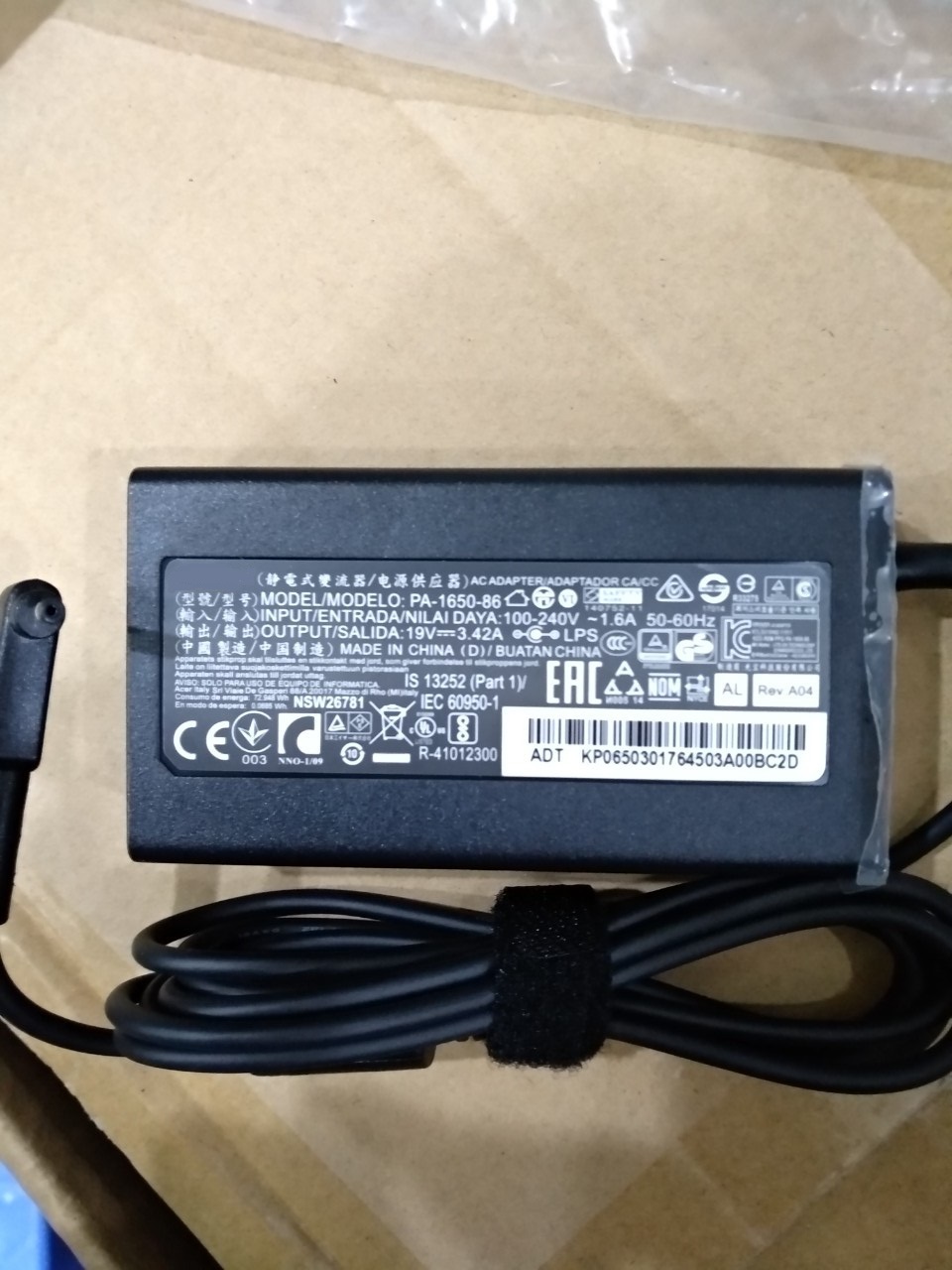 Tên sạc Điện áp vào (input) 100V - 240V Điện áp ra (output) 20V-12A/19.5-11.8A Công suất 230/240Walt Chuẩn chân cắm 6.0 mm3.7 mm, with central pin inside . Tần số làm việc 50 -60 Hz