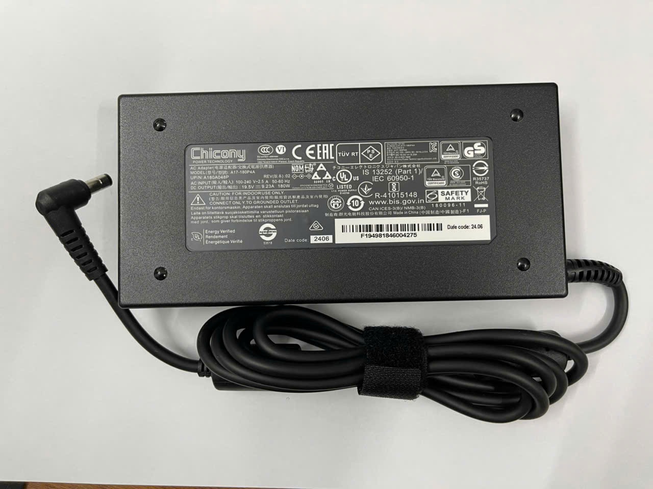- Tên sạc: Sạc cho Laptop Gaming MSI GL63 GL73 8RC - Điện áp vào (input) 100V - 240V - Điện áp ra (output) 19.5V 9.23A - Công suất 180W - Chuẩn chân cắm 7.4mm