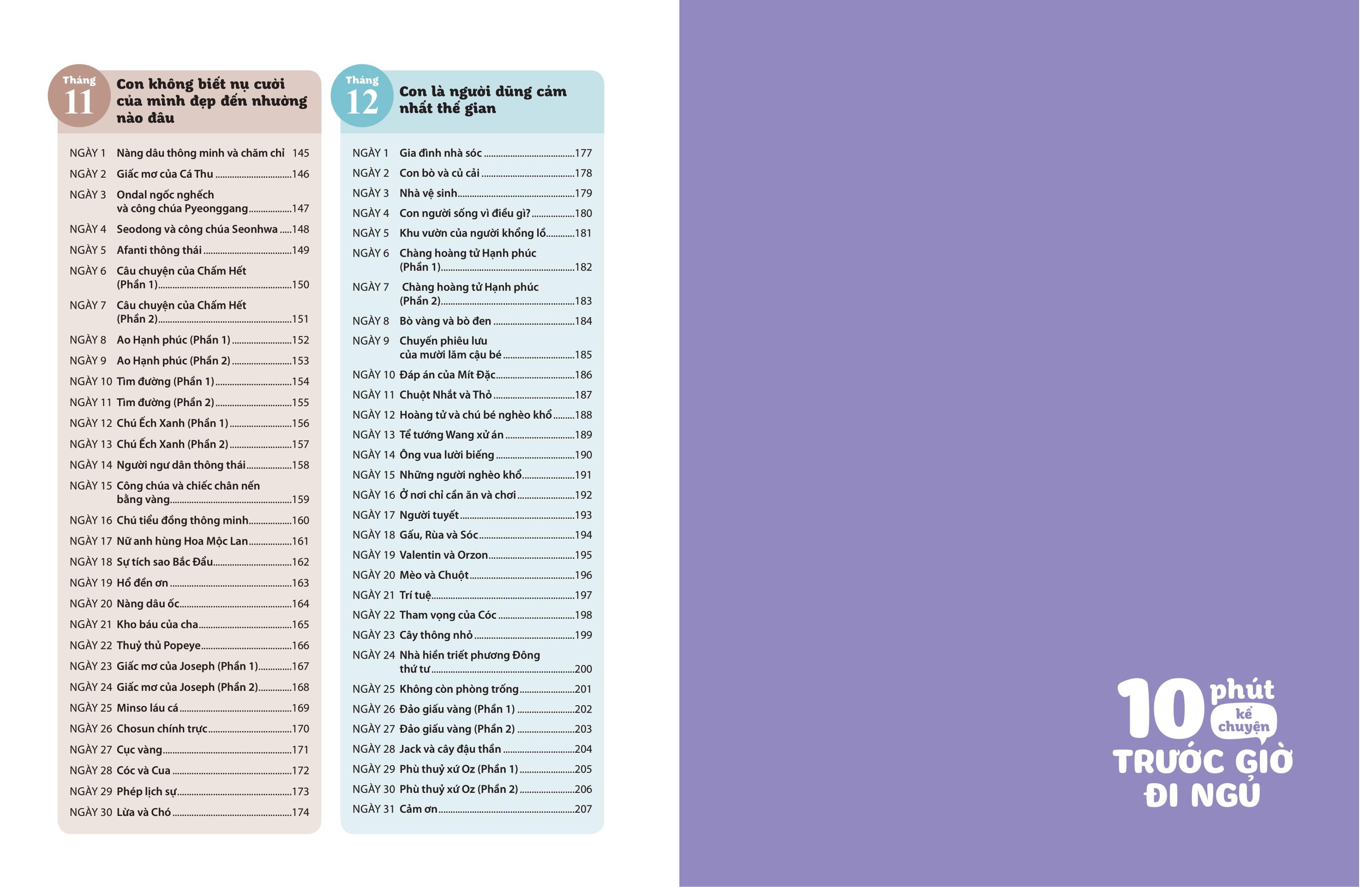 Bộ sách này gồm 2 tập, tập hợp 365 truyện kể lấy cảm hứng từ nhiều chủ đề, câu chuyện và các nền văn hóa trên khắp thế giới, có thể đọc liên tục trong suốt một năm. Mỗi câu chuyện lại gửi gắm những bài học ý nghĩa khác nhau để cha mẹ và các em nhỏ cùng khám phá.