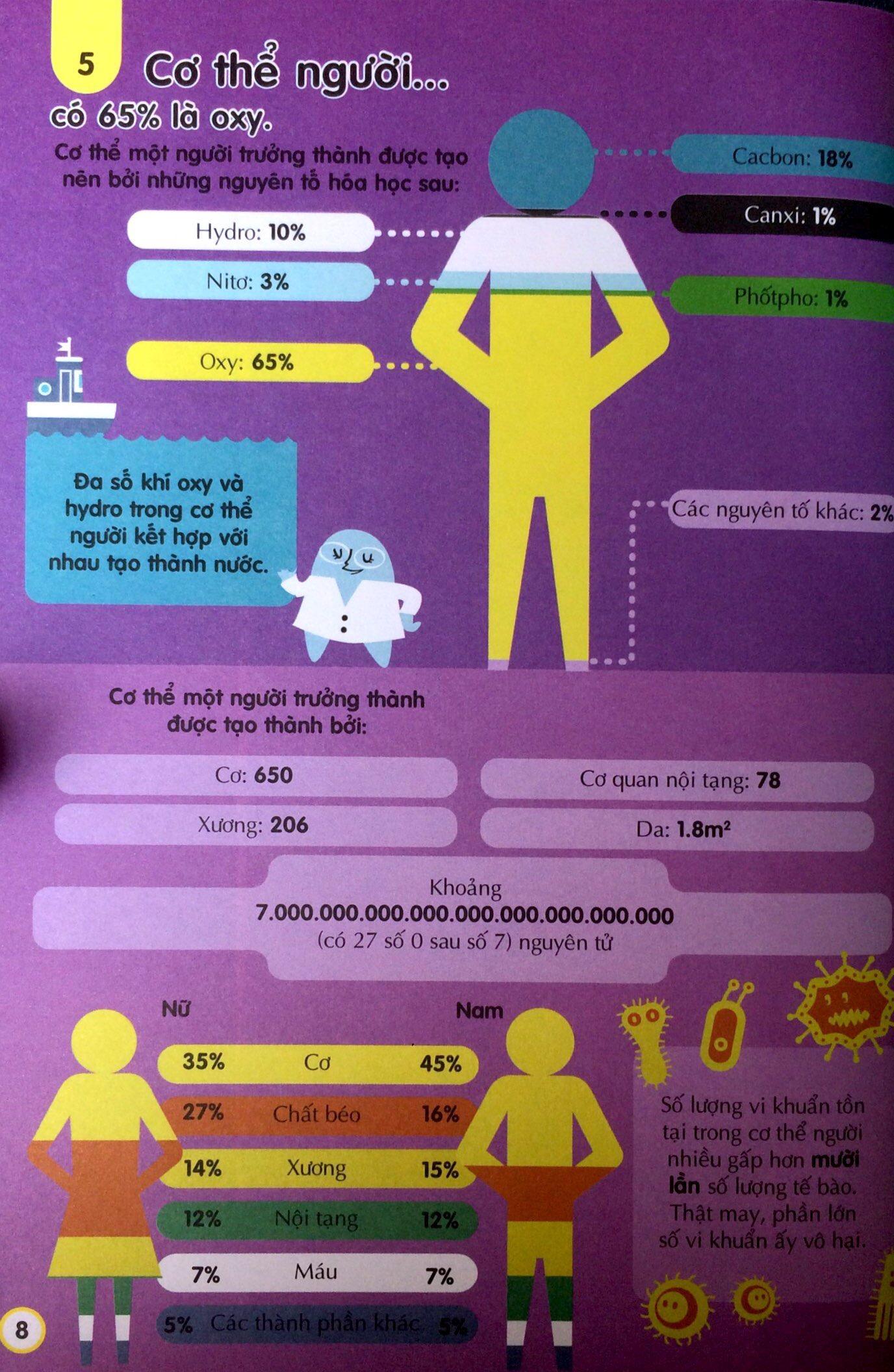 Cơ thể người có 65% là oxy.