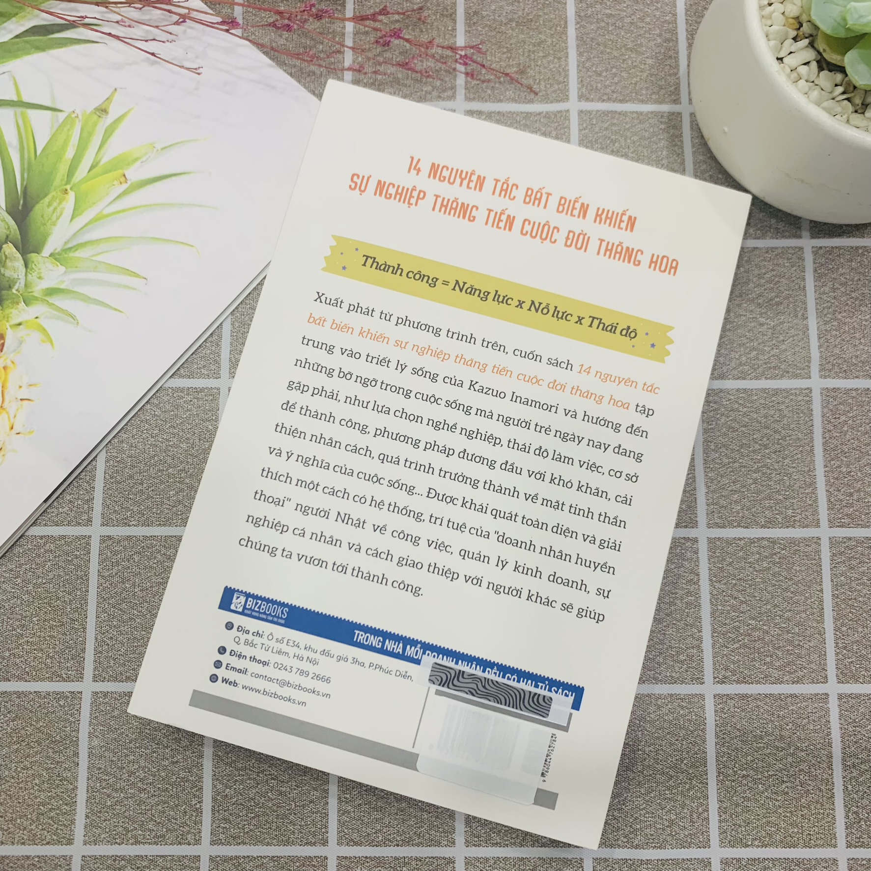 Xuất phát từ phương trình trên, cuốn sách 14 nguyên tắc bất biến khiến sự nghiệp thăng tiến cuộc đời thăng hoa tập trung vào triết lý sống của Kazuo Inamori và hướng đến những bỡ ngỡ trong cuộc sống mà người trẻ ngày nay đang gặp phải, như lựa chọn nghề nghiệp, thái độ làm việc, cơ sở để thành công, phương pháp đương đầu với khó khăn, cải thiện nhân cách, quá trình trưởng thành về mặt tinh thần và ý nghĩa của cuộc số Được khái quát toàn diện và giải thích một cách có hệ thống, trí tuệ của "doanh nhân huyền thoại" người Nhật về công việc, quản lý kinh doanh, sự nghiệp cá nhân và cách giao thiệp với người khác sẽ giúp chúng ta vươn tới thành công.