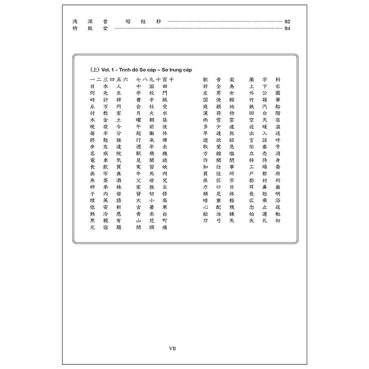 Tập 1,2 này dành cho các học viên Sơ cấp - Sơ trung cấp tiếng Nhật. Hai tập sách cung cấp 555 chữ Hán cơ sở và cần thiết cho trình độ Sơ cấp – Sơ trung cấp, tương ứng với trình độ tiếng Nhật N5, N4, N3 trong kỳ thi JLPT. Những chữ Kanji này cũng được lấy từ sách sơ cấp chính mà học sinh người Nhật học đến hết lớp 3 trong trường tiểu học.