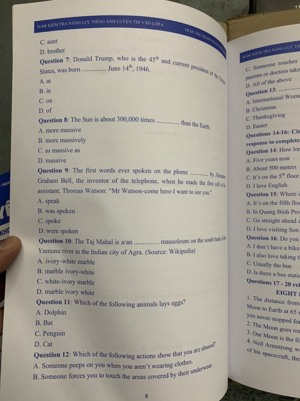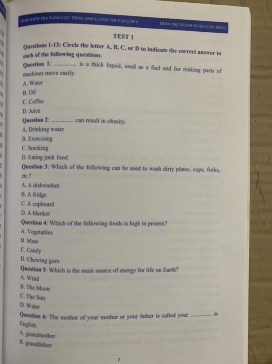 Nội dùng gồm có: Sách gồm 30 đề thi thử môn tiếng Anh, mỗi đề gồm 25 câu hỏi với các kiểu bài phong phú và đa dạng kiểm tra kiến thức về ngữ âm, từ vựng, ngữ pháp và bắt đầu làm quen với các bài tập viết ngắn. Phần cuối phần cuối cuốn sách này đã bán cho các đề thi Contents Test 1 Test 2 Test 3 Test 4 Test 5 Test 30 Answer keys Tác giả: Trần Thị Thanh Xuân, Phí Thị Hương Giang, Nguyễn Thu Trang, Nguyễn Thanh Vân, Hà Thu ngân, Trần Thị Oanh, Ts. Kasey Hames ( Hiệu đính ) Số trang: 219 Xuất bản: 2020 Nhà xuất bản: Đại học quốc gia Hà Nội Công ty phát hành: Nxb Đại học quốc gia Hà Nội