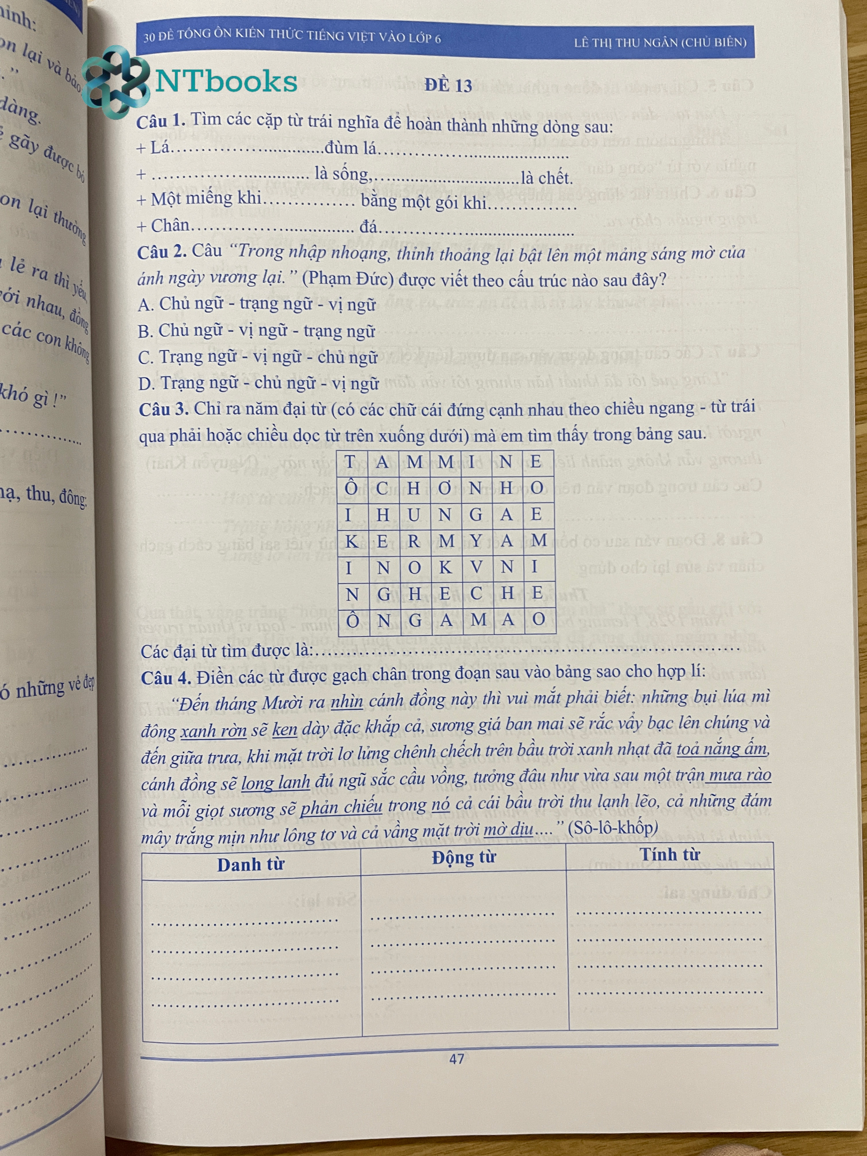 Phần 1. 30 Đề tổng ôn kiến thức tiếng Việt vào lớp 6