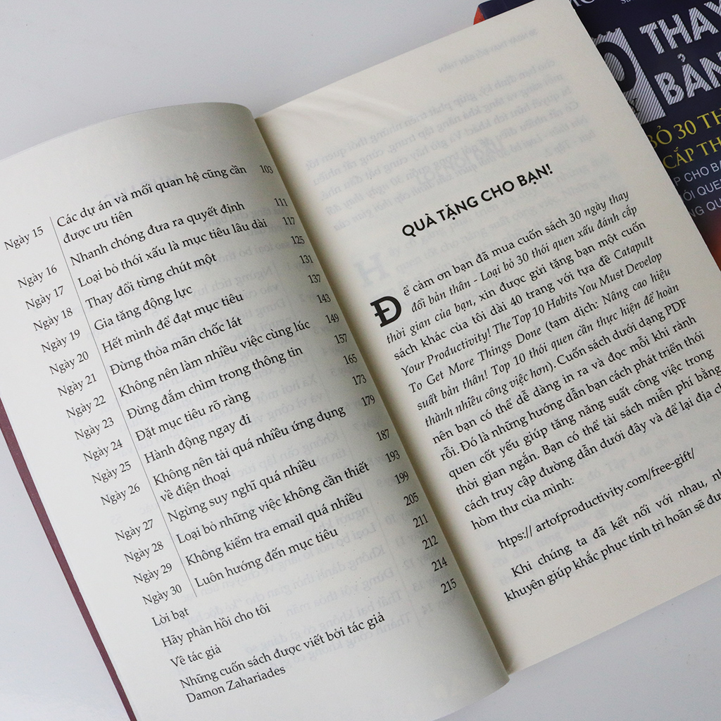 Cuốn sách sẽ định hướng lộ trình thay đổi cho bạn trong 30 ngày. Chỉ dẫn cho bạn về cách loại bỏ những thói quen không tốt như thế nào và bắt đầu thói quen mới ra sao
