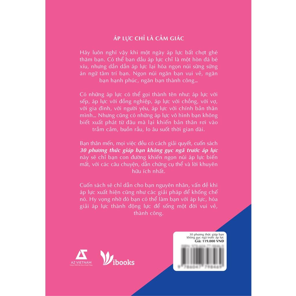 Bạn thân mến, mọi việc đều có cách giải quyết, cuốn sách 30 phương thức giúp bạn không gục ngã trước áp lực này sẽ chỉ bạn con đường khiến ngọn núi áp lực biến mất, với những câu chuyện, dẫn chứng cụ thể và lời khuyên hữu ích nhất.Cuốn sách sẽ chỉ dẫn cho bạn nguyên nhân, vấn đề khi áp lực xuất hiện cũng như các giải pháp để khống chế nó. Hy vọng nhờ đó bạn có thể làm bạn với áp lực, hoá giải áp lực thành động lực để sống một cuộc đời vui vẻ, thành công.