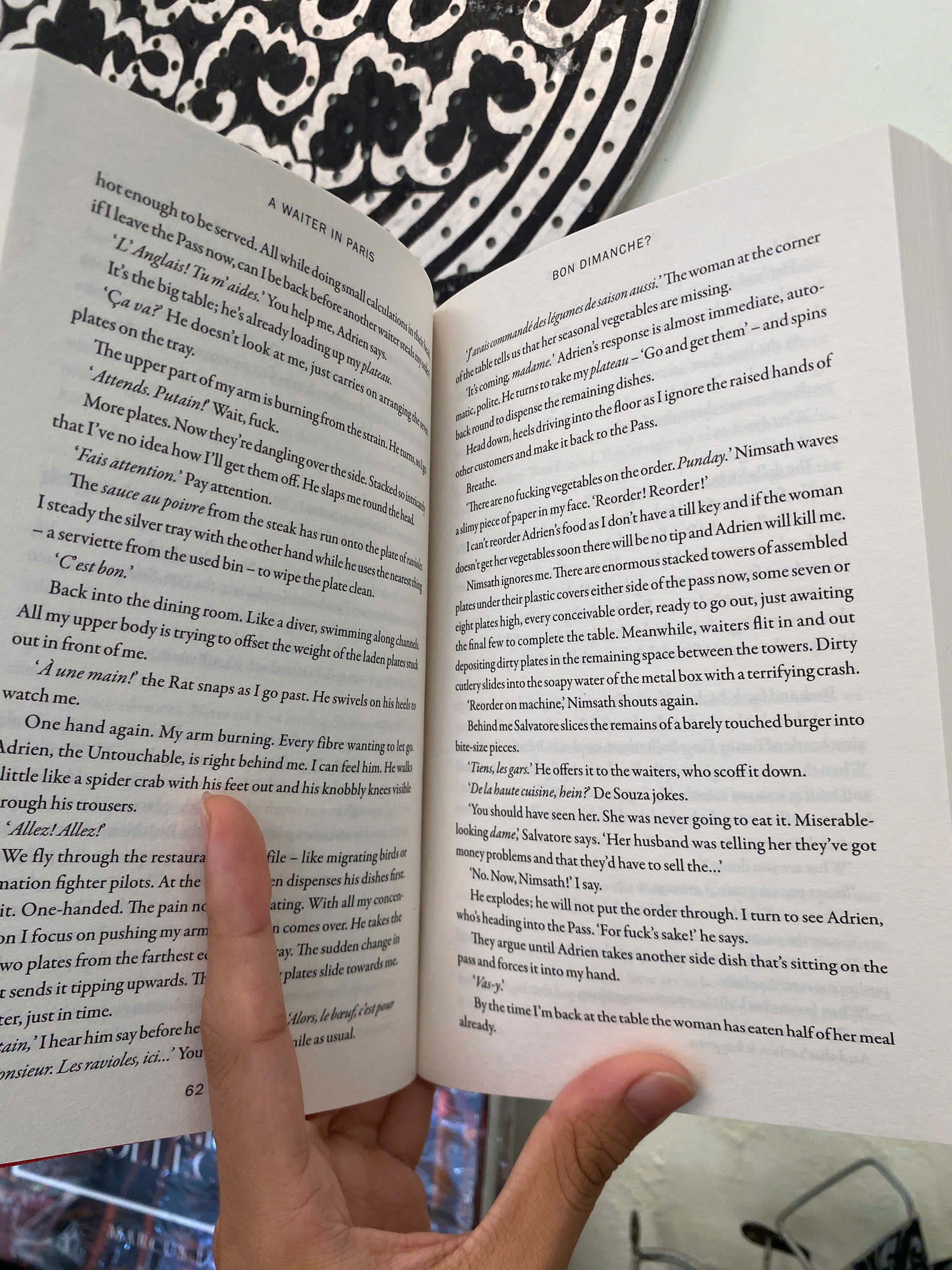 Một bức chân dung về mặt trái của Paris đương đại được nhìn qua con mắt của một chàng bồi bàn trẻ đang kiếm sống ở Kinh đô Ánh sáng. Công việc của một bồi bàn là lừa dối bạn. Họ muốn bạn tin vào sự bình yên xa hoa bởi vì ở phía bên kia cánh cửa đó... là địa ngục. Hồi ký đầy mê hoặc của Edward Chisholm về thời gian làm bồi bàn ở Paris sẽ đưa bạn vào sâu bên trong một trong những thành phố mang tính biểu tượng nhất thế giới—và đi thẳng vào mặt trái huy hoàng của nó.