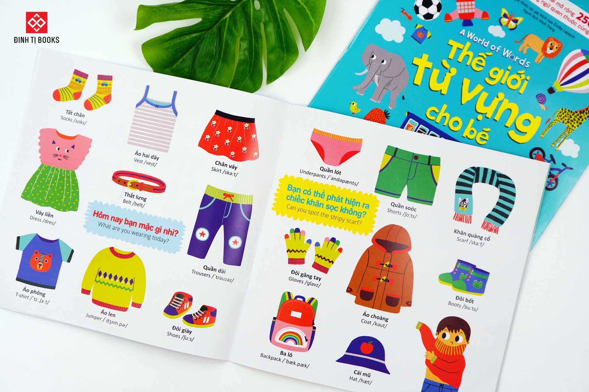 Còn gì tuyệt vời hơn khi vừa được khám phá thế giới muôn màu, vừa được trau dồi cho mình một vốn từ vựng tiếng Anh phong phú nhỉ! Với hàng trăm từ vựng song ngữ thuộc nhiều chủ đề quen thuộc như trang phục, động vật, phương tiện giao thông, nhà ở…ố mẹ và bé tha hồ được “ngụp lặn” trong thế giới ngôn từ sinh động rực rỡ của cuốn sách này. Và đây sẽ là nền tảng vững chắc giúp bé gặt hái thành công trên con đường chinh phục môn học tiếng Anh sau này đấy.