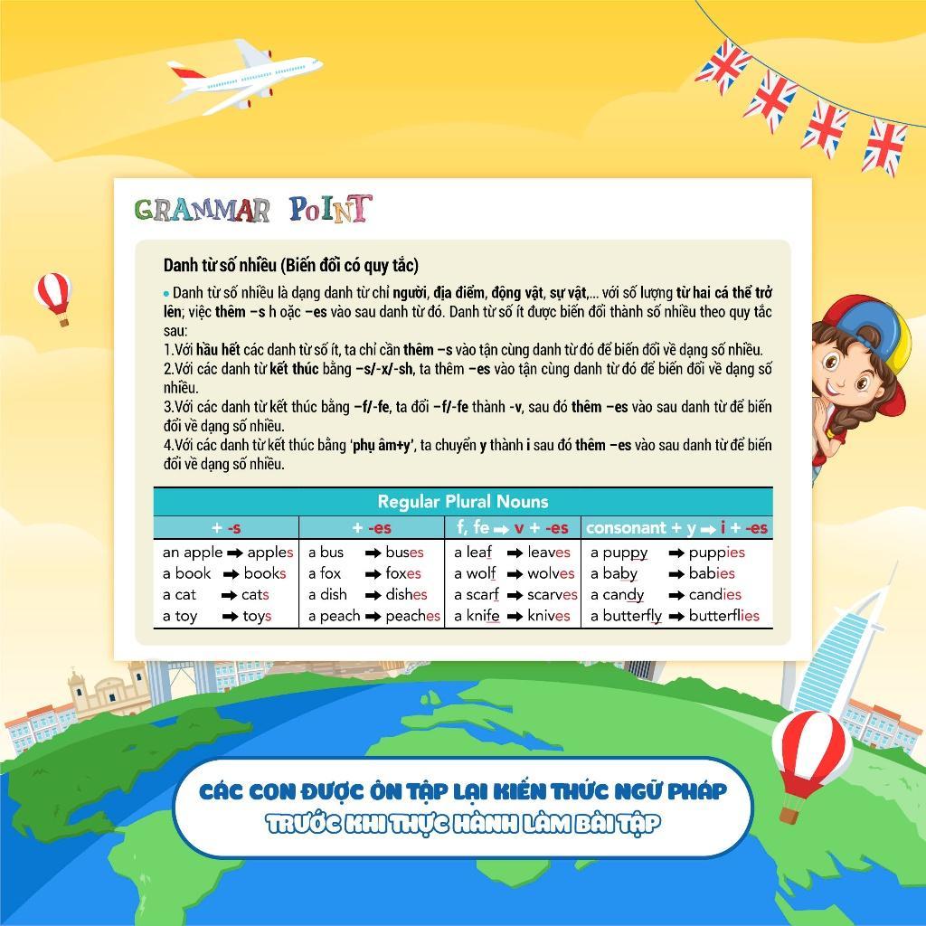 Các con được ôn tập lại kiến thức ngữ pháp trước khi thực hành làm bài tập