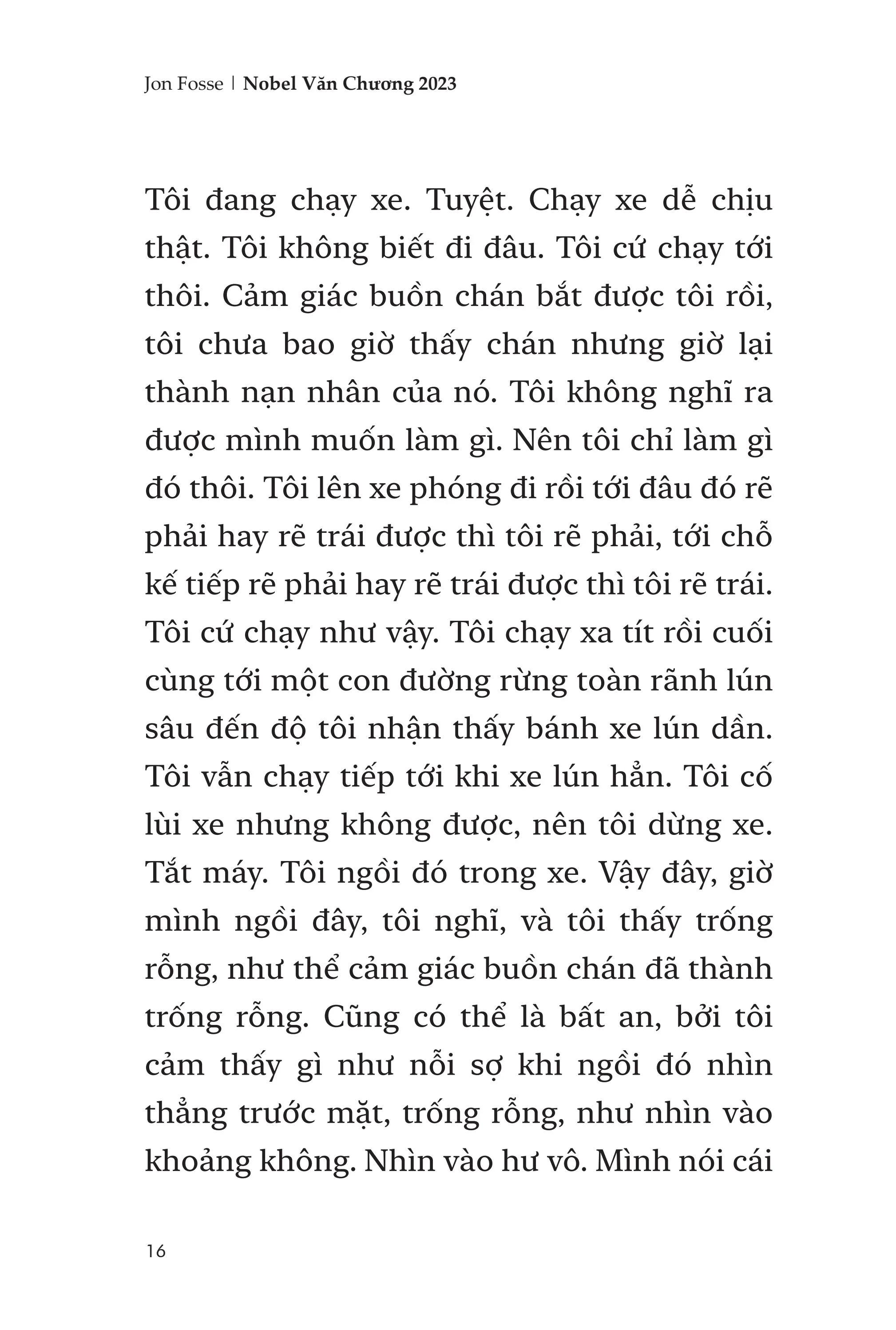 Ánh sáng trắng là một cuốn tiểu thuyết xuất sắc về ranh giới giữa sự sống và cái chết, về sự mất phương hướng và khao khát. Đây là tác phẩm mới nhất, được phát hành vào mùa xuân năm 2023, thể hiện độ chín hoàn hảo của Jon Fosse. Ông sử dụng những ẩn dụ thoáng qua về một thế giới mà nhân vật chính của cuốn sách không thể hiểu, không thể giải nghĩa, để khám phá những mục tiêu thách thức nhất của nhân loại: Chắc chắn và vững vàng là một trong số đó. Giọng văn rõ ràng của ông mang lại cho những tình tiết mơ hồ của câu chuyện một chiều sâu vừa mới mẻ, vừa quen thuộc.