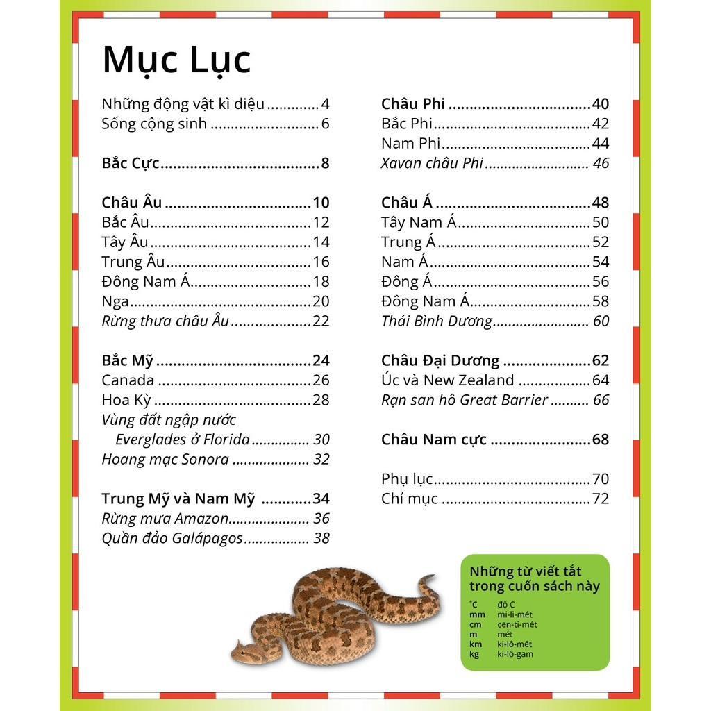 Từ những đại dương sâu thẳm đến những cánh rừng rậm xanh rì, những ngọn núi cao hùng vĩ và những sa mạc nóng cháy da cháy thịt, bạn đọc như được bước lên chuyến hành trình khám phá những loài động vật tuyệt vời nhất thế giới.