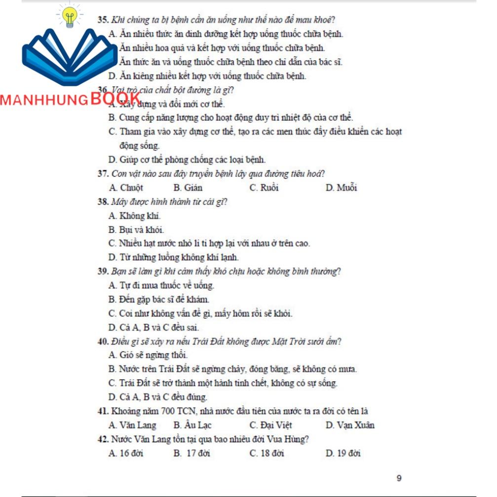 Phần thứ hai: Các bài luyện tập thuộc các môn: Toán – Tiếng Việt – Tiếng Anh – Khoa học – Lịch sử và Địa lí