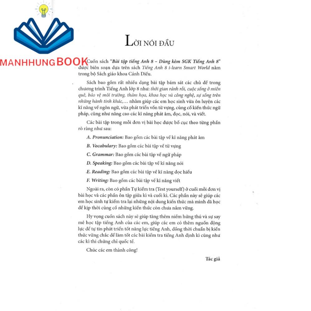 Bài Tập Tiếng Anh 8 (Không Đáp Án) Dùng Kèm SGK Tiếng Anh 8 (Bám Sát SGK Cánh Diều I-Learn Smart World)