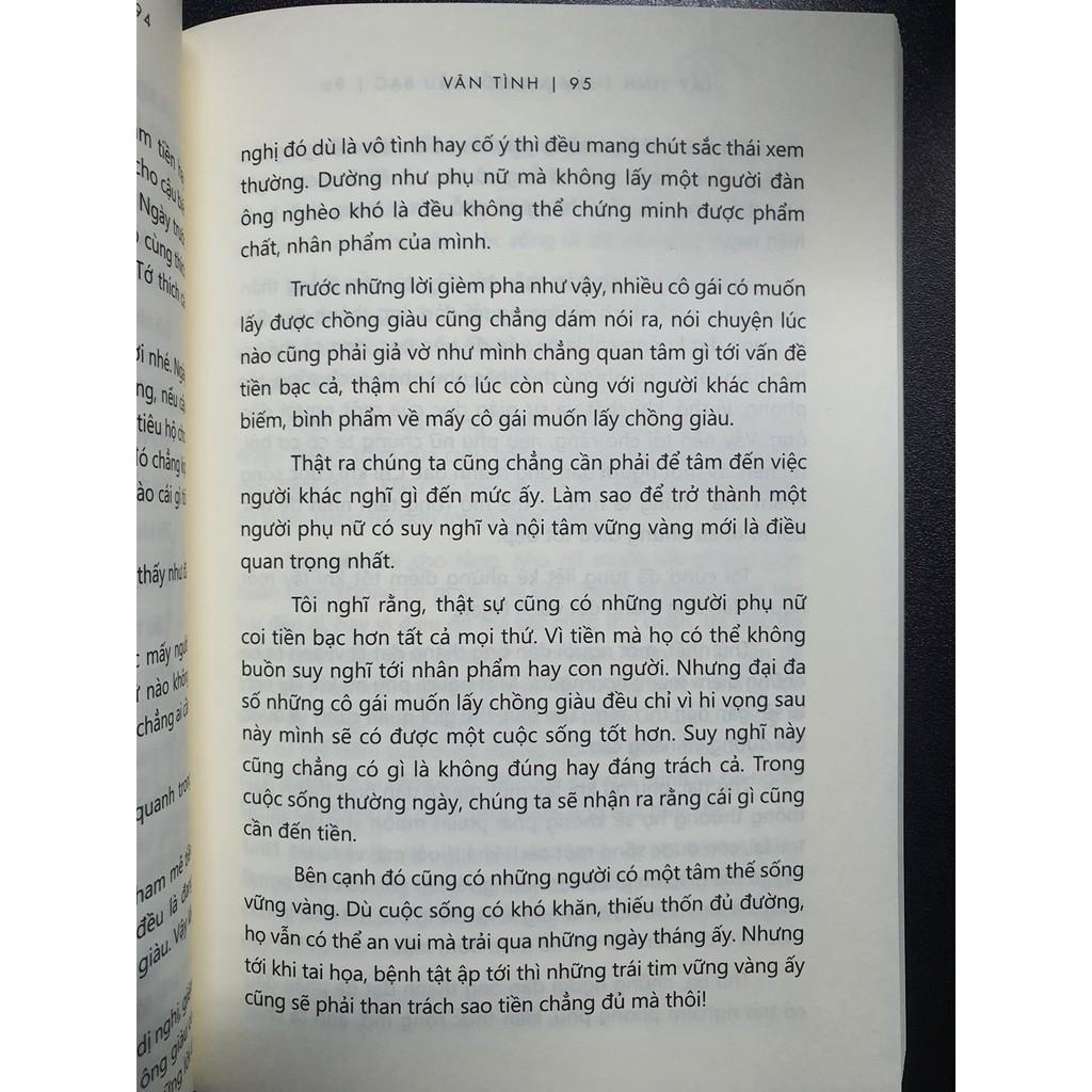 - Khí Chất Bao Nhiêu, Hạnh Phúc Bấy Nhiêu Tác giả: Vãn Tình Năm xuất bản: 2019 Nhà xuất bản: Nhà Xuất Bản Thế Giới Số trang: 376 “Hãy sống như một trái dứa: Đầu đội vương miện, dáng đứng hiên ngang – Bên ngoài gai góc, bên trong ngọt ngào.” Cũng giống như trái dứa, khi một người phụ nữ đủ bản lĩnh để chống đỡ và vượt qua nghịch cảnh, đủ tĩnh tại để tận hưởng trọn vẹn niềm vui cuộc sống, thì đó chính là lúc họ đội lên đầu chiếc vương miện và trở thành nữ hoàng trong thế giới của chính mình.
