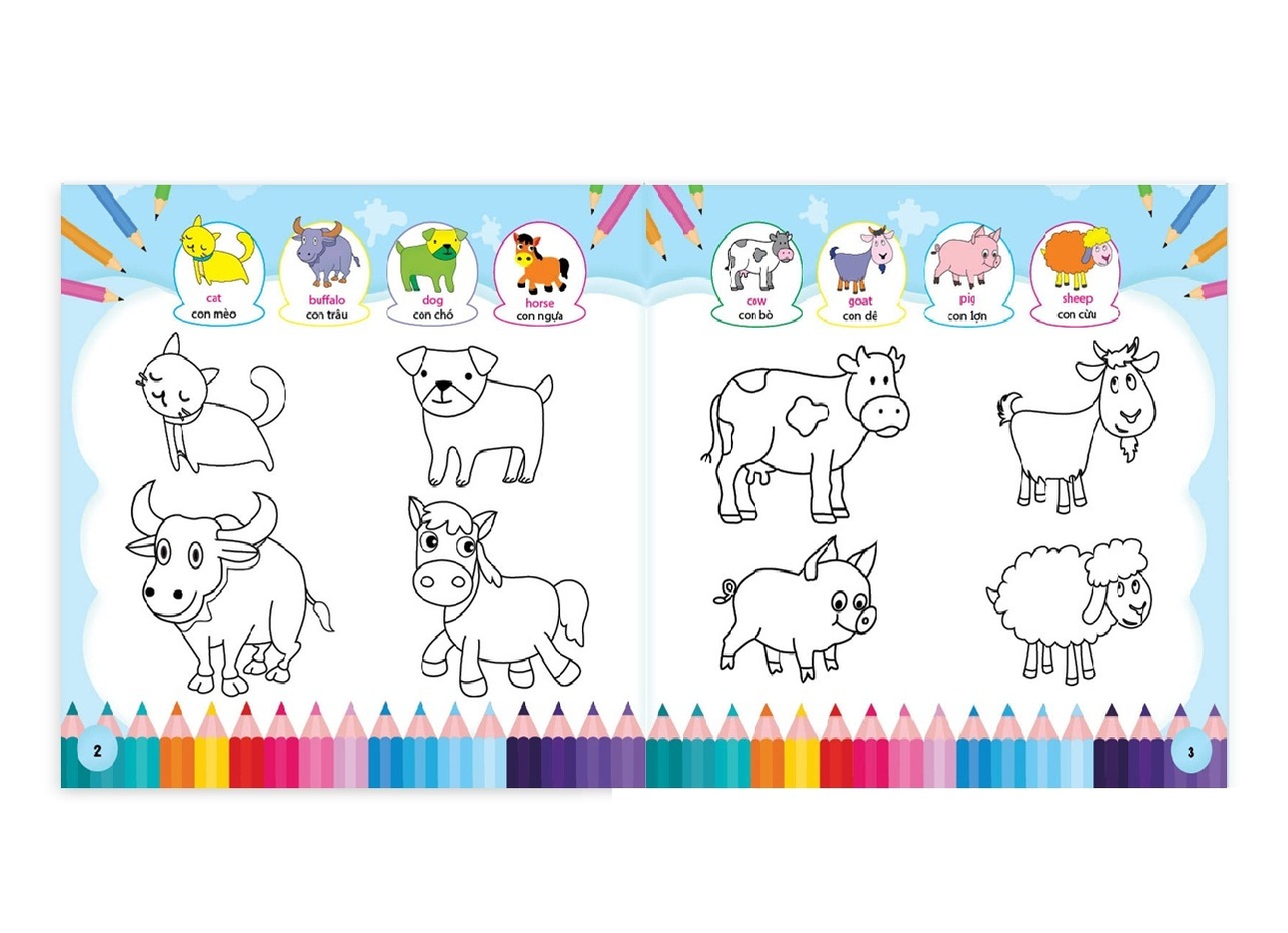 - Cuốn sách tô màu 9999 chính là tài liệu hữu ích để khơi gợi tư duy bé. Trong quá trình luyện tô màu, lại có thể giúp các bé nhận biết các đồ vật, con vật và học chữ.