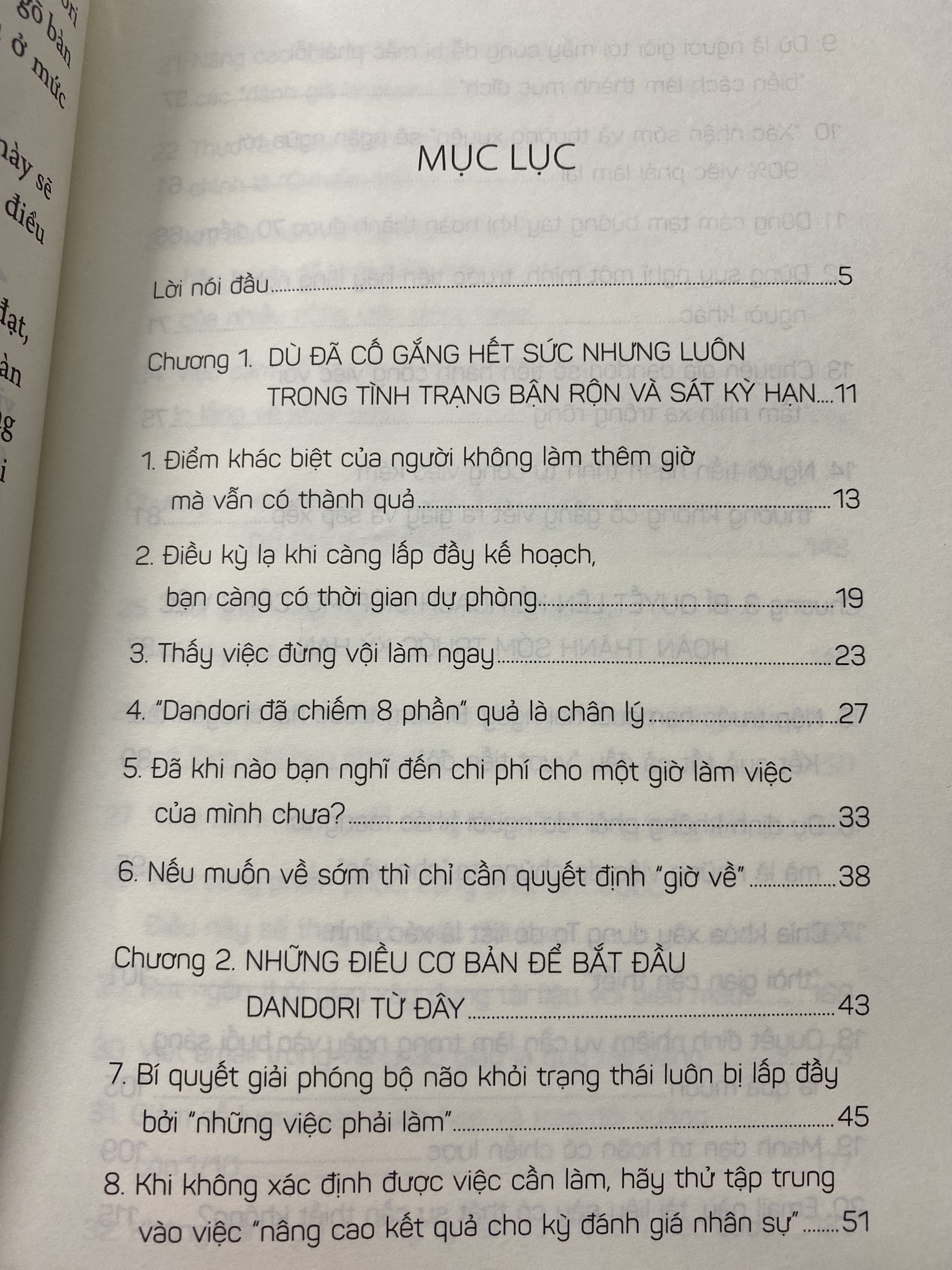 Ở Nhật, Dandori đã trở thành một từ phổ biến, người ta thường nghe “người này Dandori tốt” “người kia Dandori kém”. Vậy Dandori là gì? Có thể hiểu Dandori là năng lực chuẩn bị và sắp xếp công việc. Người có khả năng Dandori tốt không phải là người xử lý công việc nhanh, có thao tác khéo léo mà là người biết mục đích thực sự của việc mình sẽ làm và để đạt được mục đích đó phải lập kế hoạch chi tiết cũng theo nhiều phương án cụ thể, để dù có xảy ra bất cứ tình huống nào mục tiêu vẫn được thực hiện.