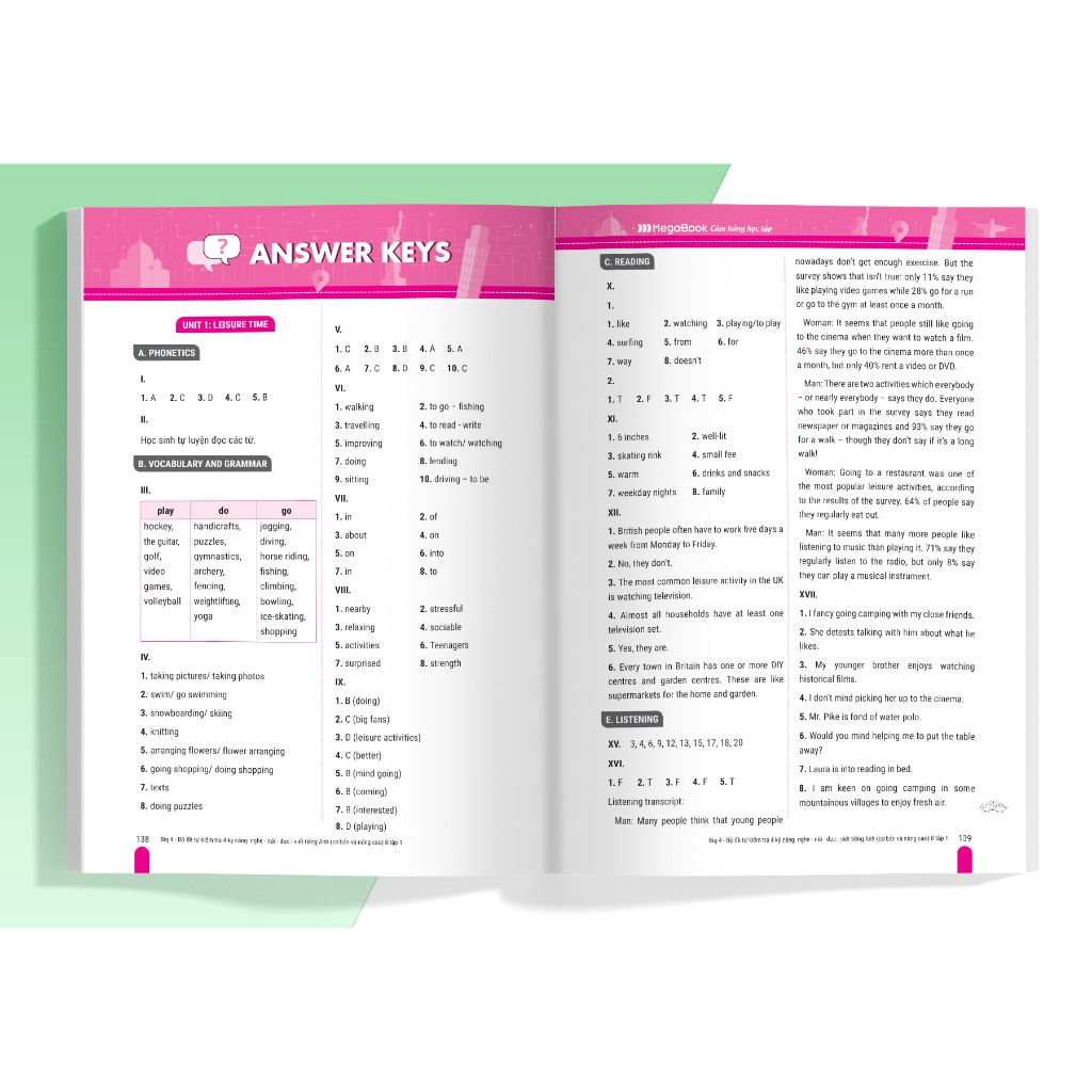 Các bài tập về 4 kỹ năng được liên kết với nhau theo logic bài học giúp cảm em cảm thấy tự tin và phát triển toàn diện kỹ năng nghe, nói, đọc, viết tiếng Anh
