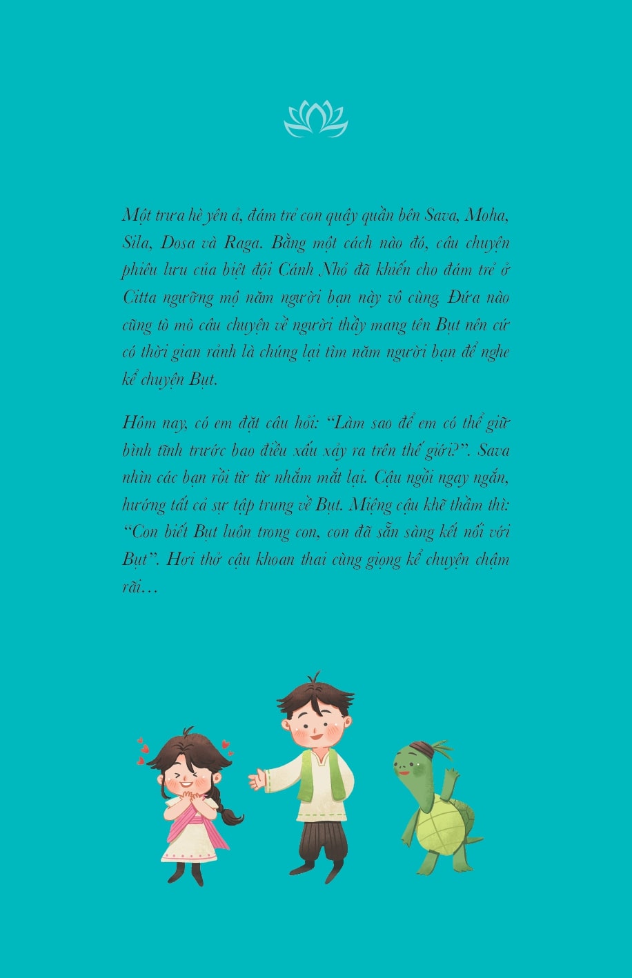 Cuốn truyện đưa các con theo chân Đức Phật tham gia một hành trình tráng lệ. Từ đỉnh núi cao đến đại dương sâu thẳm. Vượt qua vành đai sao Thổ và những cánh bướm xinh. Câu chuyện ngọt ngào này sẽ cho các con thấy: