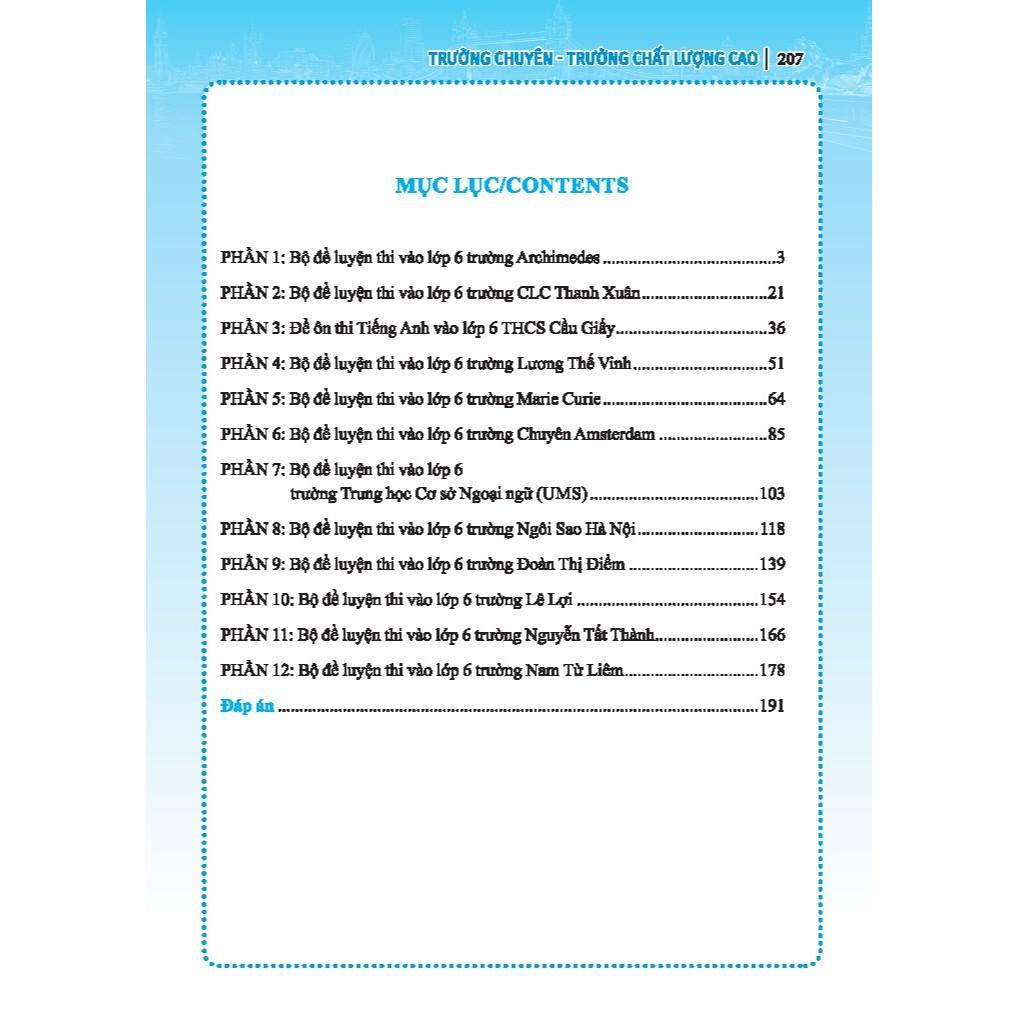 Các bài tập được phân cấp rõ ràng từ dễ đến khó, từ đơn giản đến phức tạp. Sau mỗi đề thi sẽ có đáp án cụ thể cho từng bài. Các em sẽ đón nhận ở đó trọn vẹn những gì các em còn thiếu sót để chuẩn bị tốt nhất cho kỳ thi vào lớp 6 sắp tới.