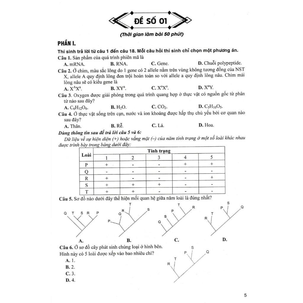Cuốn sách gồm hệ thống 25 để, mỗi để có 28 câu, trong đó có 18 câu hỏi trắc nghiệm nhiều lựa chọn 4 câu trắc nghiệm đúng sai 6 câu hỏi trắc nghiệm trả lời ngắn.