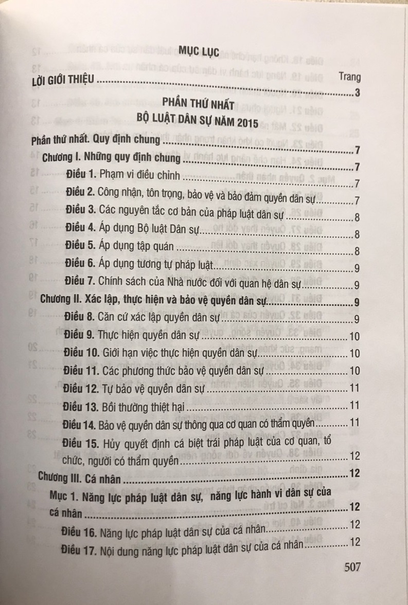 Bộ Luật Dân Sự Nước Cộng Hòa Xã Hội Chủ Nghĩa Việt Nam Nội dung sách bao gồm các văn bản quy phạm pháp luật quy định về địa vị pháp lý, chuẩn mực pháp
