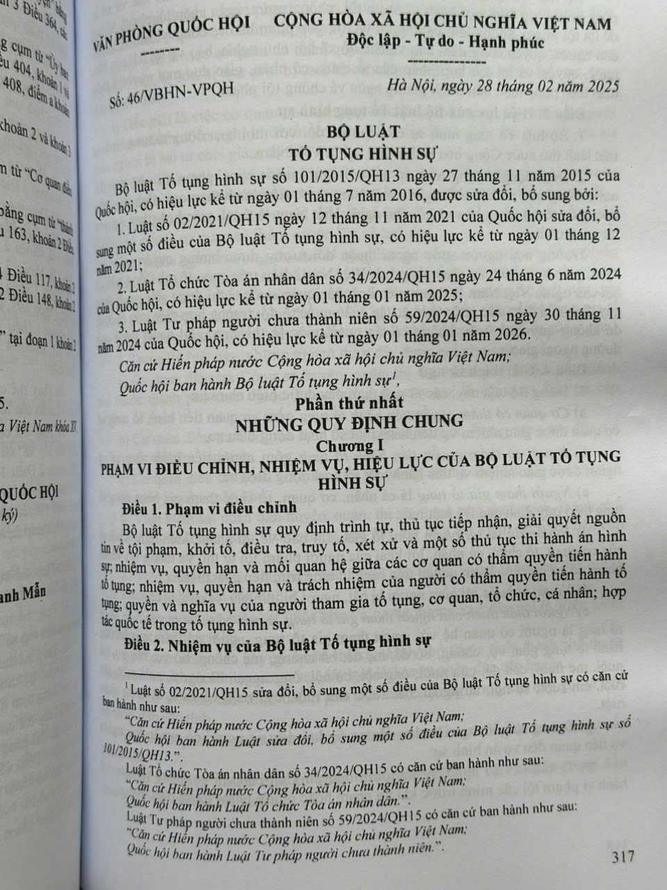 Phiên bản Bộ luật tố tụng hình sự năm 2015 (đính kèm 4 trang nội dung chỉnh sửa năm 2021), nên bạn đọc cân nhắc khi mua tham khảo Bộ luật tố tụng
