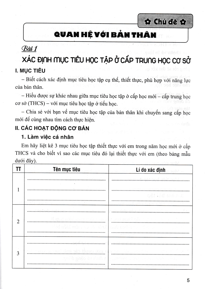 Ở từng bài, các em có thể thực hiện hoạt động theo thứ tự hoặc theo từng phần mà mình thích: đọc câu chuyện, xử lý các tình huống, chia sẻ, nhận diện và hành động, liên quan đến hành vi, thói quen đạo đức, kĩ năng sống theo từng chủ đề nêu trên. Có những hoạt động các em sẽ thực hiện được ngay, cũng có những hoạt động, nếu các em chưa giải quyết được ngay thì đừng nản chí, hãy kiên nhẫn, bình tĩnh suy nghĩ, nhất định khám phá và sẽ làm chủ được vấn đề.