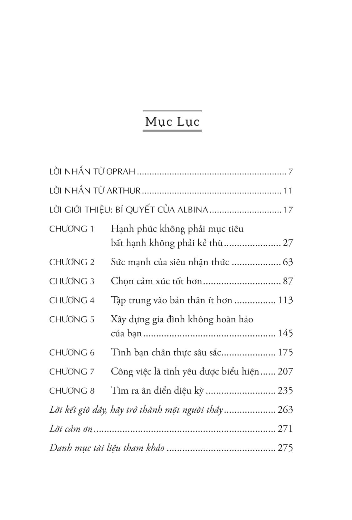 "Nghệ thuật sống hạnh phúc dưới góc nhìn khoa học" sẽ giúp bạn thoát ra khỏi mô thức này. Bạn hoàn toàn có thể làm chủ cuộc đời m.ình, chứ không phải là người đứng bên lề quan sát mọi thứ diễn ra. Bạn có thể học cách phản hồi với những hoàn cảnh tiêu cực và chọn những cảm xúc khiến bạn hạnh phúc hơn ngay cả khi bạn gặp phải tình huống tiêu cực nằm ngoài tầm kiểm soát. Bạn có thể tập trung năng lượng của m.ình vào những trụ cột nền tảng của hạnh phúc - những điều mang lại sự hài lòng và ý nghĩa lâu dài.