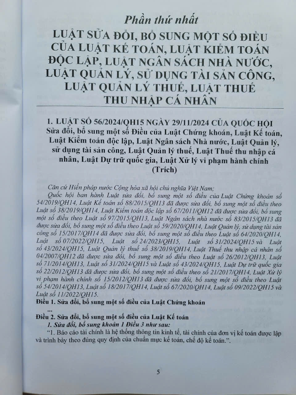 Phần thứ nhất. LUẬT SỬA ĐỔI, BỔ SUNG MỘT SỐ ĐIỀU CỦA LUẬT KẾ TOÁN, LUẬT KIỂM TOÁN ĐỘC LẬP, LUẬT NGÂN SÁCH NHÀ NƯỚC, LUẬT QUẢN LÝ, SỬ DỤNG TÀI SẢN CÔNG, LUẬT QUẢN LÝ THUẾ, LUẬT THUẾ THU NHẬP CÁ NHÂN