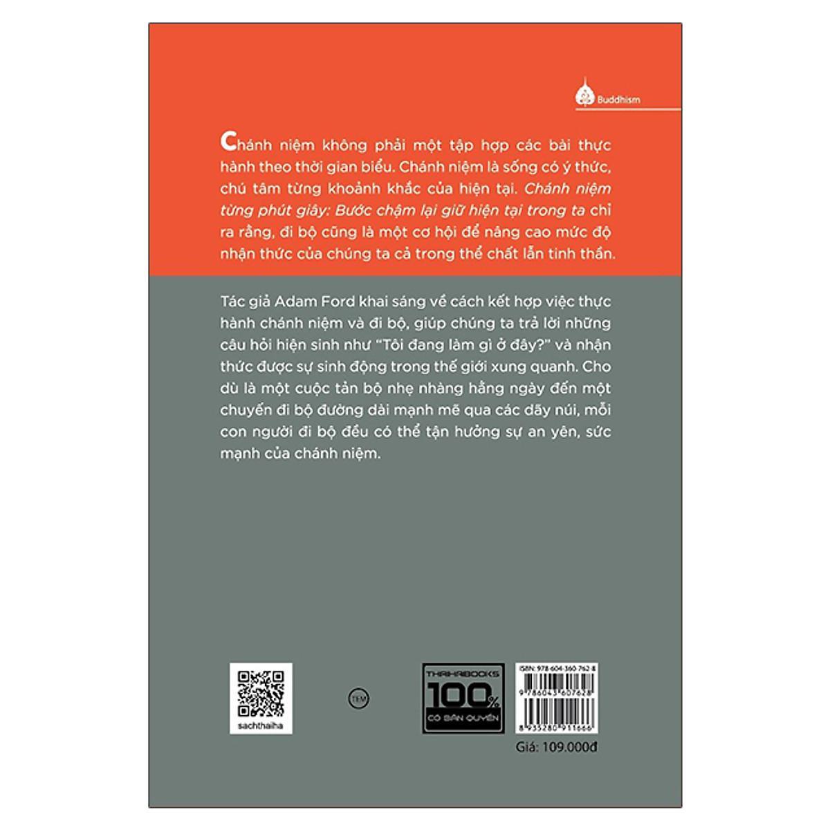 Đây là cuốn sách nằm trong bộ “Chánh niệm từng phút giây”. Cuốn sách gợi mở những suy nghĩ mới về việc đi bộ – một trong những hoạt động thú vị nhất mà chúng ta thực hiện mỗi ngày – như một cách tiếp cận có “chánh niệm” hơn với cuộc sống.