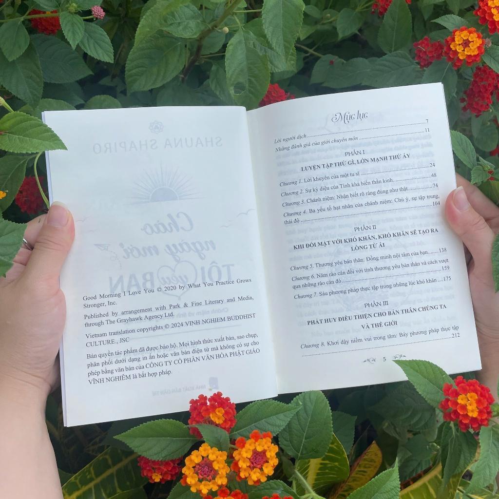 Chào ngày mới! Tôi yêu bạn có lẽ là cuốn sách chủ đạo nhất về chánh niệm mà tôi từng đọc. Tại sao tôi nói vậy? Vì tất cả chúng ta đều muốn trở nên hạnh phúc hơn. Tất cả chúng ta đều muốn yêu thương bản thân mình nhiều hơn. Nhưng có rất ít cuốn sách chỉ cho bạn biết chính xác cách thực hiện điều đó. Tiến sĩ Shauna đã kiến tạo ra một lộ trình. Đó là sự kết hợp hoàn hảo giữa khoa học, các câu chuyện thực tế, sự thực tập và trí tuệ vào chung một mục đích: Giúp bạn yêu thương bản thân và cuộc sống của mình - ngay cả khi mọi thứ trở nên lộn xộn. Hãy nhanh chóng (đừng chần chừ!) mua cuốn sách này và đọc ngay tức khắc. Hãy đọc bằng cả trái tim, và việc thực tập sẽ thay đổi cuộc sống của bạn