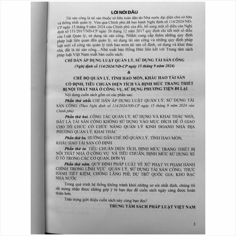 Nhà sách Nam Việt – Namvietbook xin trân trọng giới thiệu cuốn sách: Chỉ Dẫn Áp Dụng Luật Quản Lý, Sử Dụng Tài Sản Công theo Nghị định số 114/2024/NĐ-CP ngày 15 tháng 9 năm 2024 & Chế Độ Quản Lý, Tính Hao Mòn, Khấu Hao Tài Sản Cố Định, Tiêu Chuẩn Diện Tích và Định Mức Trang Thiết Bị Nội Thất Nhà Ở Công Vụ, Sử Dụng Phương Tiện Đi Lại Sách Chỉ Dẫn Áp Dụng Luật Quản Lý, Sử Dụng Tài Sản Công theo Nghị định số 114/2024/NĐ-CP ngày 15 tháng 9 năm 2024 & Chế Độ Quản Lý, Tính Hao Mòn, Khấu Hao Tài Sản Cố Định, Tiêu Chuẩn Diện Tích và Định Mức Trang Thiết Bị Nội Thất Nhà Ở Công Vụ, Sử Dụng Phương Tiện Đi Lại