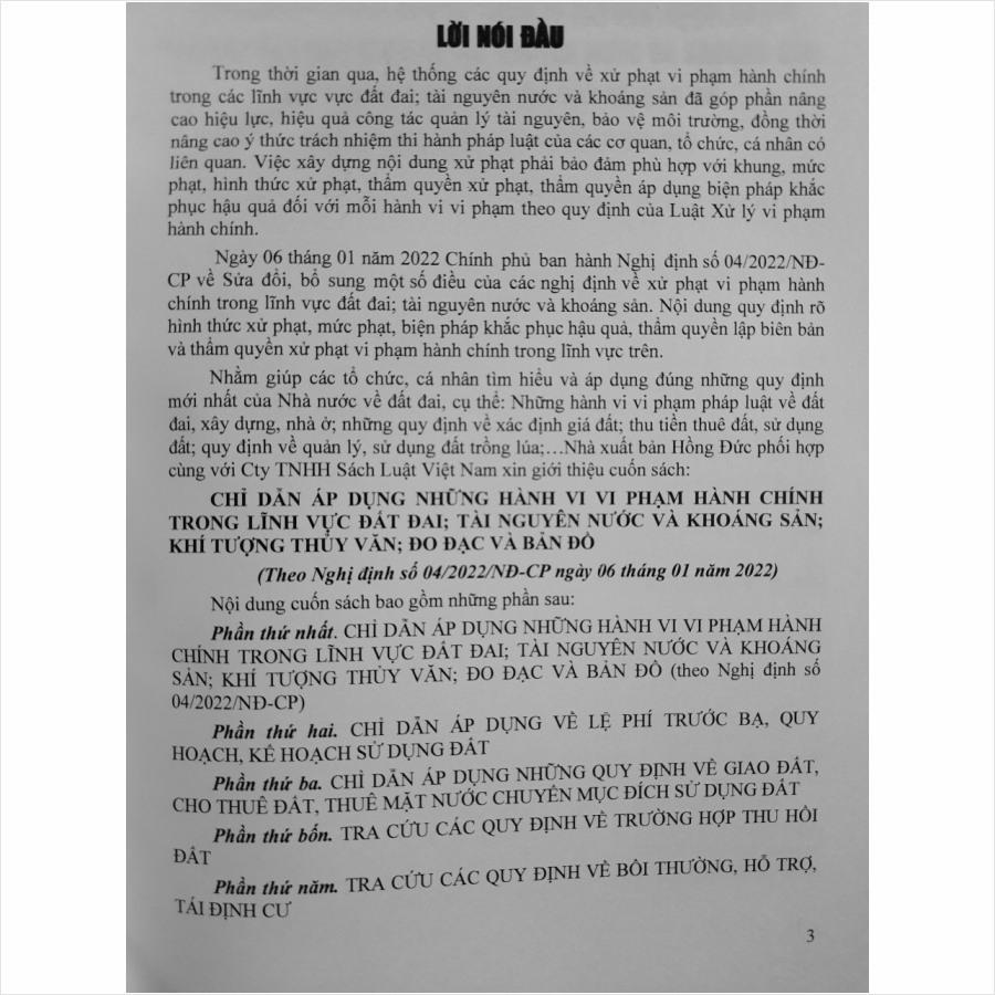 ✨Sách Chỉ Dẫn Áp Dụng Những Hành Vi Vi Phạm Hành Chính Trong Lĩnh Vực Đất Đai, Tài Nguyên Nước Và Khoáng Sản, Khí Tượng Thủy Văn, Đo Đạc Và Bản Đồ - V2129T