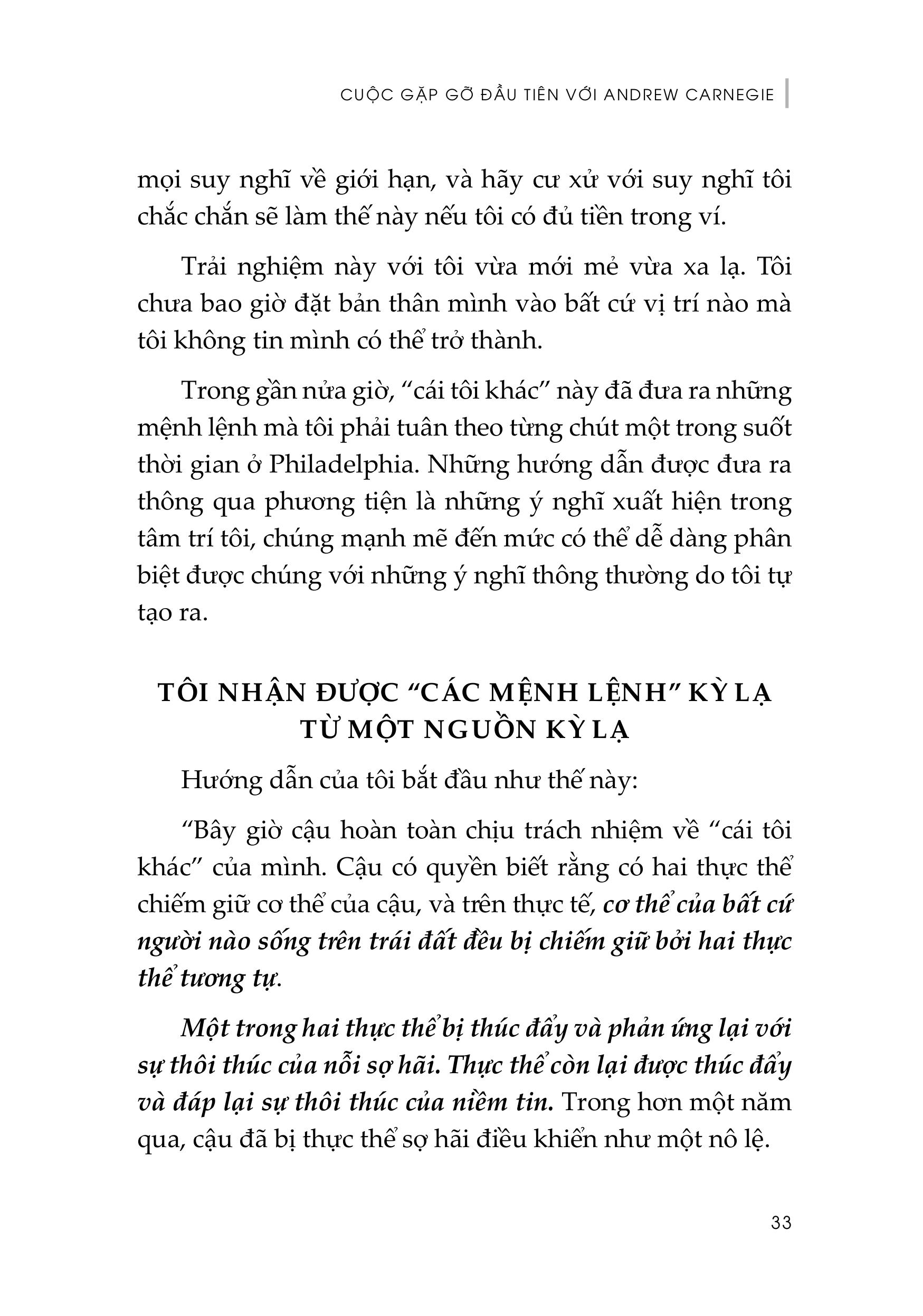 - Số trang: 284 trang GIỚI THIỆU SẢN PHẨM NAPOLEON HILL (1883-1970) Là một trong những tác giả nổi tiếng nhất mọi thời đại. Ông được biết đến nhiều nhất qua những cuốn sách kinh điển như: • Nghĩ giàu làm giàu • Chiến thắng con quỷ trong bạn • Luật thành công Các tác phẩm của Napoleon Hill đã truyền cảm hứng cho hàng triệu người tìm kiếm thành công và thay đổi cuộc sống. Một cuộc phỏng vấn vô tiền khoáng hậu, một cách truyền đạt những triết lý thành công cá nhân đầy mới lạ trong suốt hàng chục năm trời trước khi được xuất hiện trước mắt những con người đang lao đao vì khó khăn từ cuộc sống. Chiến Thắng Con Quỷ Trong Bạn của Napoleon Hill không chỉ là một tác phẩm truyền cảm hứng, mà còn là một hành trình giúp chúng ta khám phá sâu hơn về bản chất con người. Cuốn sách sẽ giúp bạn nhận diện và vượt qua những cám dỗ mà Con Quỷ đã bày ra để đạt được những mục tiêu cho mình, chạm tới một cuộc sống tự do và sung túc mà tâm hồn con người luôn tìm kiếm. MỘT SỐ HÌNH ẢNH THAM KHẢO CAM KẾT